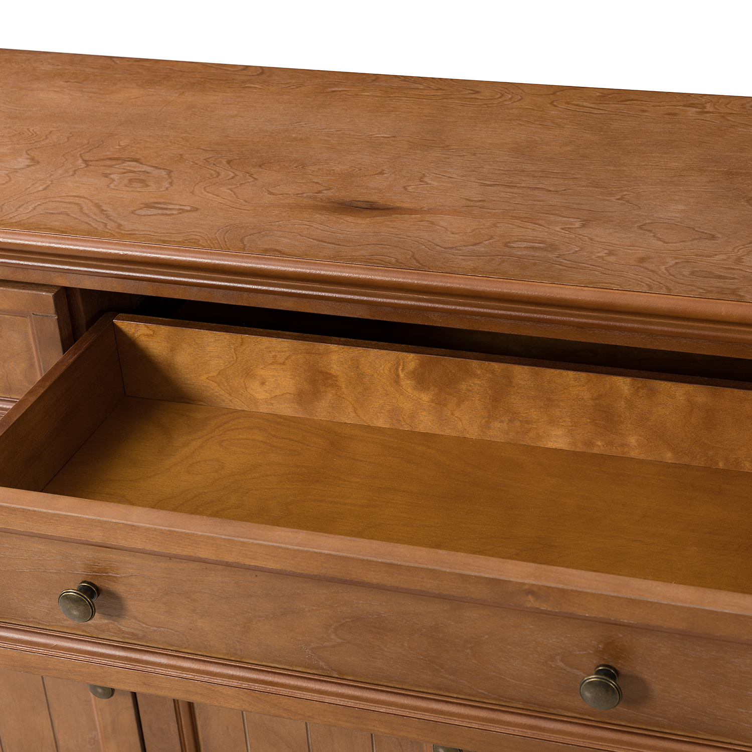 This farmhouse sideboard is a stunning addition to any home, radiating warmth and comfort. With its chic channel design and vintage-inspired metal pulls, it brings sophistication to your living space. The spacious tabletop is perfect for displaying your favorite items, while the drawers and shelves provide ample storage for household essentials. Whether placed in the dining room, living room, or entryway, this sideboard effortlessly adapts to your needs!