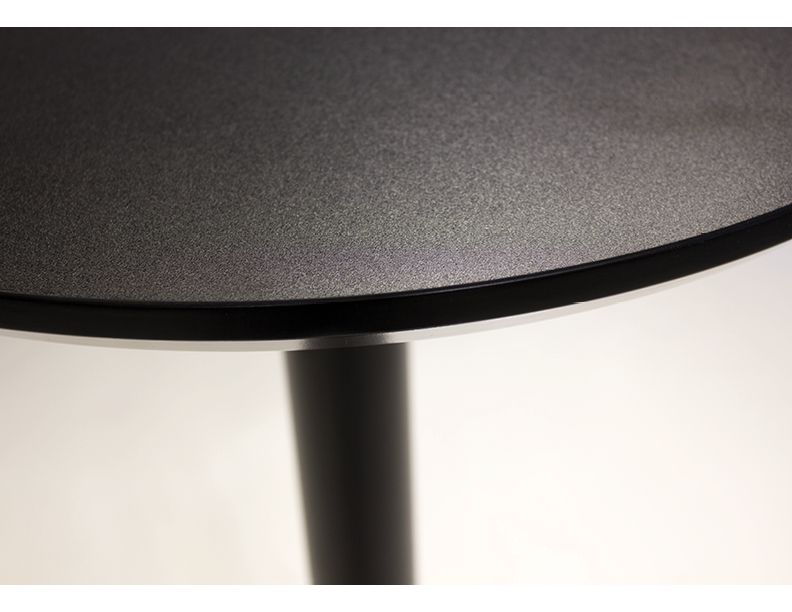 The HALFPINT Black Round Commercial Dining Table is an ideal solution for compact spaces. Its modern, all-black design features a highly durable melamine top, ensuring longevity. This table is suitable for both residential and commercial use. Enjoy a stylish and robust dining surface perfect for smaller areas.