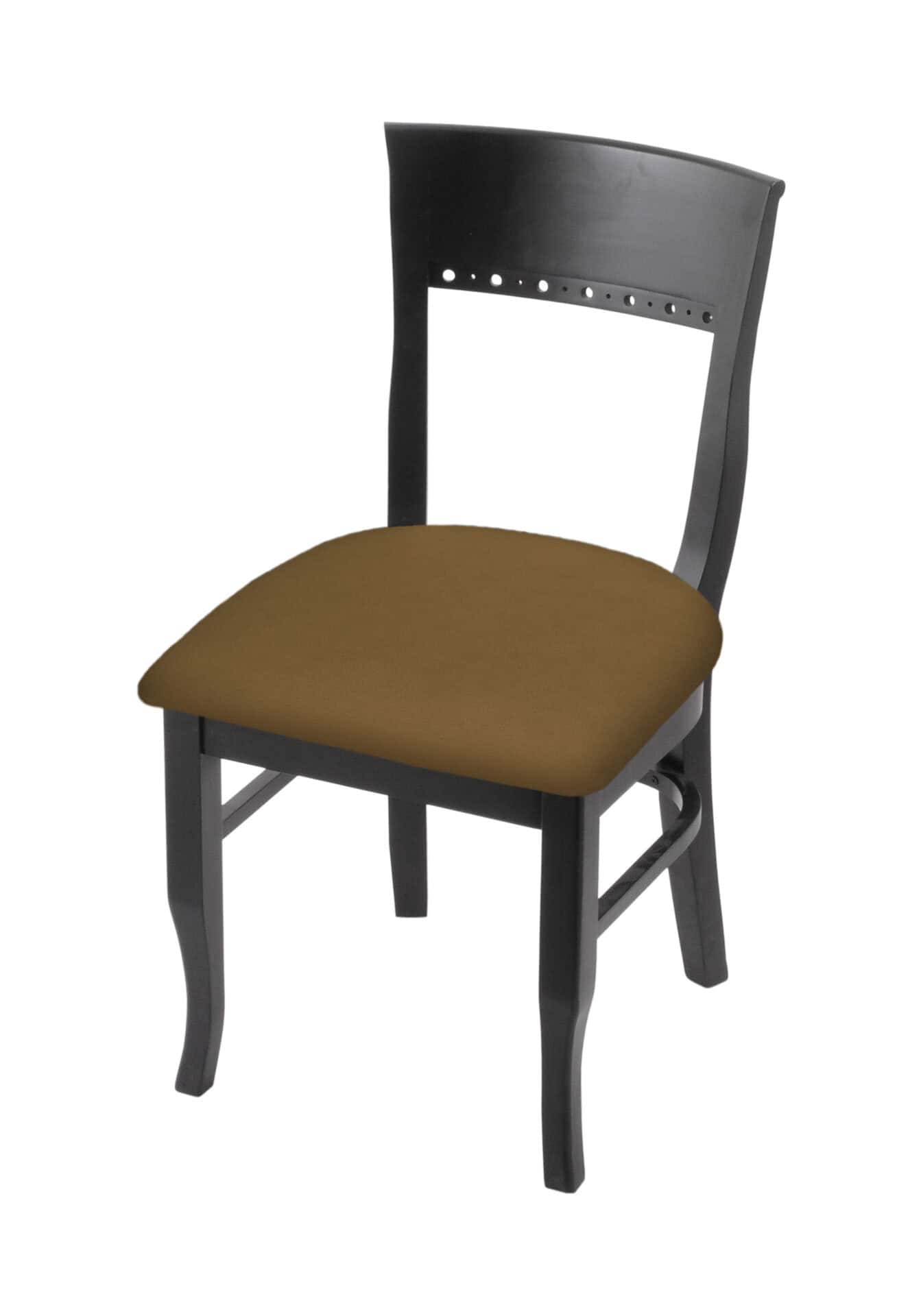 This chair is an elegant addition to any kitchen or bar area, offering the perfect blend of style and comfort. These chairs are perfect for the individual who wants class and reliability at an affordable price. The construction is as strong as they come, with metal corner brackets coupled with mortis and tennon, glued and screwed joints – this chair will not get the “wobbles” that are common with lesser quality wood seating. The cushion seats are of the highest quality as well, utilizing a breathable, commercial grade vinyl or fabric. A multi-step finishing process ensures a durable, great looking finish for years to come. You won’t find a higher quality chair on the market. If you are going to finish your dining area or just need a side chair – do it right!