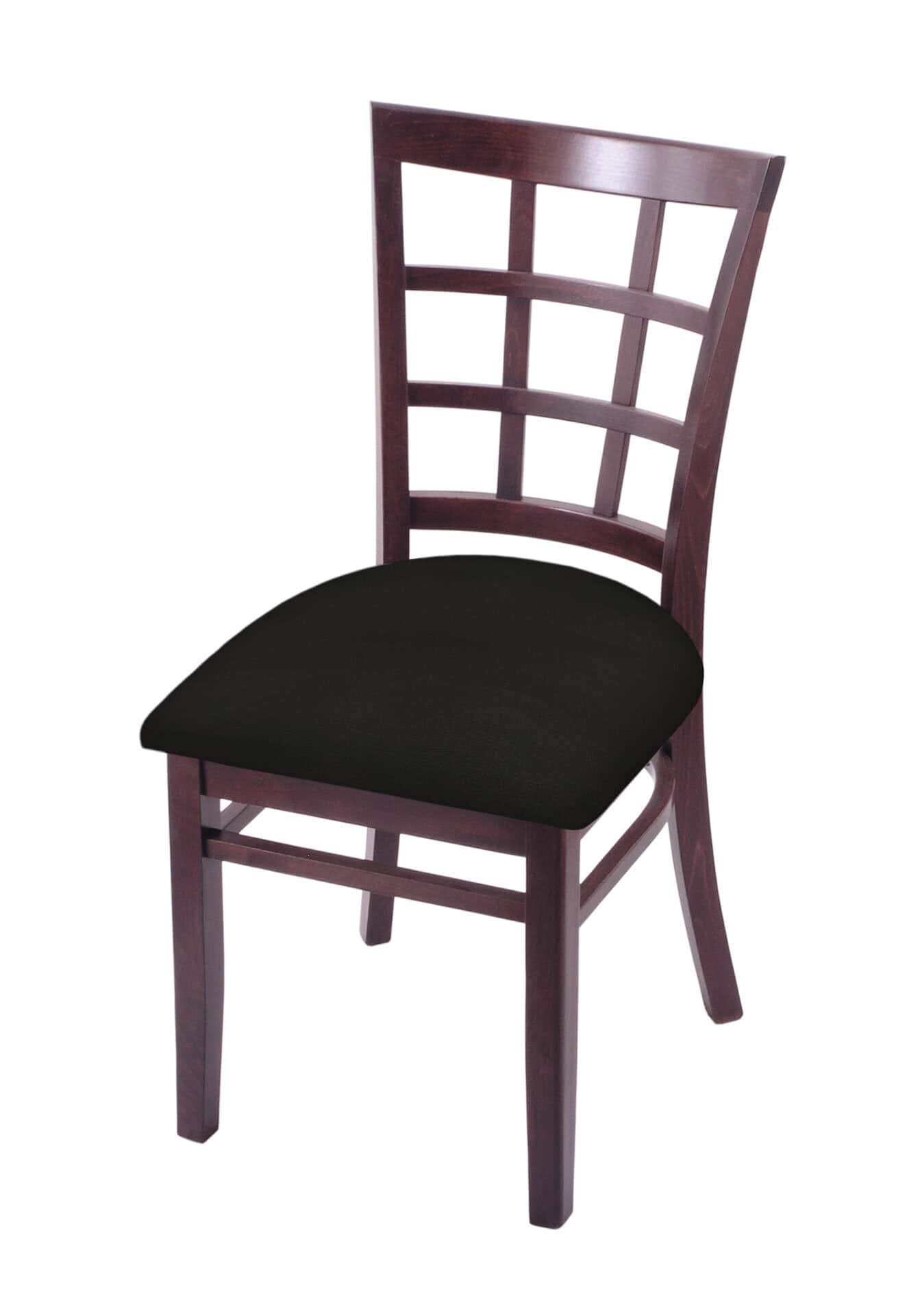 This chair is an elegant addition to any kitchen or bar area, offering a perfect blend of style and comfort. These chairs are strong enough to withstand the rigors of commercial usage yet stylish enough for your home. Perfect for those who want class and reliability at an affordable price. The construction is strong, with metal corner brackets coupled with mortis and tennon, glued and screwed joints. The cushion seats are high quality, utilizing a breathable, commercial grade vinyl or fabric. At the heart of the cushion is 2 1/2 inches of highly-dense foam that provides maximum support and will not breakdown quickly. A multi step finishing process ensures a durable, great looking finish for years to come.