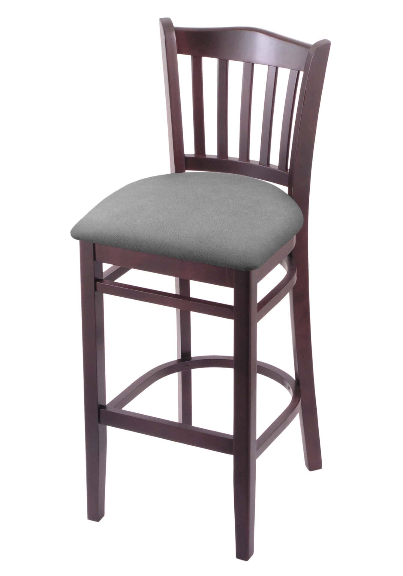 This Hampton 30-Inch Wood Bar Stool is the ultimate addition to your man cave! This stool combines style and comfort, with a dark cherry finish and a Canter Folkstone Grey cushioned seat. Built tough and designed for relaxation, this bar stool is ready to elevate your space. The jailhouse back adds a touch of classic cool!