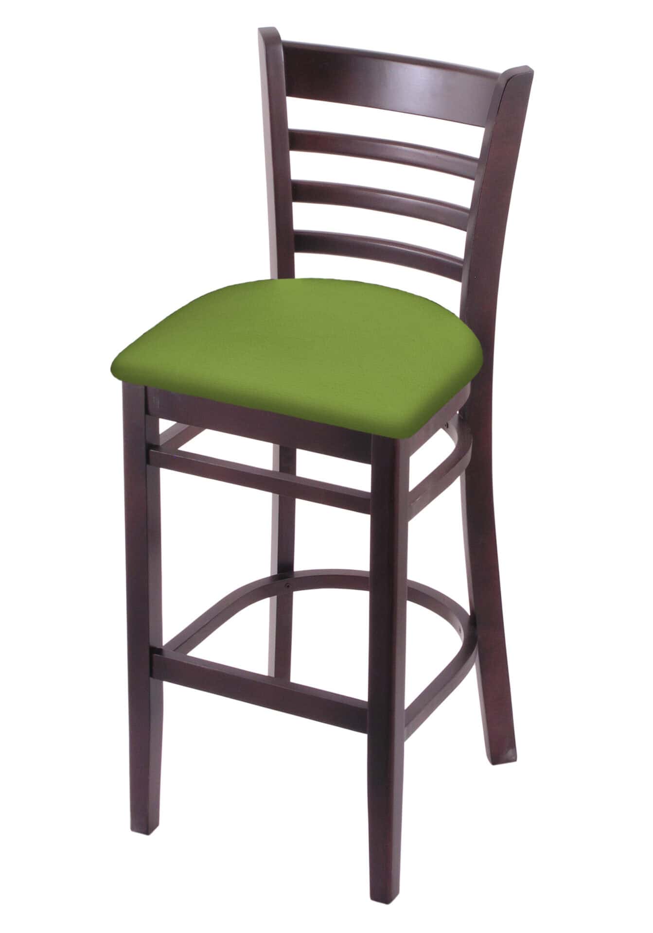 This bar stool is an elegant addition to any kitchen or bar area, offering a perfect blend of style and comfort. Made from solid beech, it’s strong enough to withstand the rigors of commercial use, yet stylish enough for your home. Perfect for those who want class and reliability at an affordable price. The construction is robust, with metal corner brackets coupled with mortis and tenon, glued and screwed joints, ensuring this bar stool won’t wobble. The wood seat is 1 1/4 inch solid beech and is dished for amazing posterior comfort, making sitting for minutes or hours a pleasure. The cushion seat is of the highest quality, utilizing a breathable, commercial-grade vinyl. At the heart of the cushion is 2 1/2 inches of highly dense foam that provides maximum support and will not break down quickly. A multi-step finishing process ensures a durable, great-looking finish for years to come.
