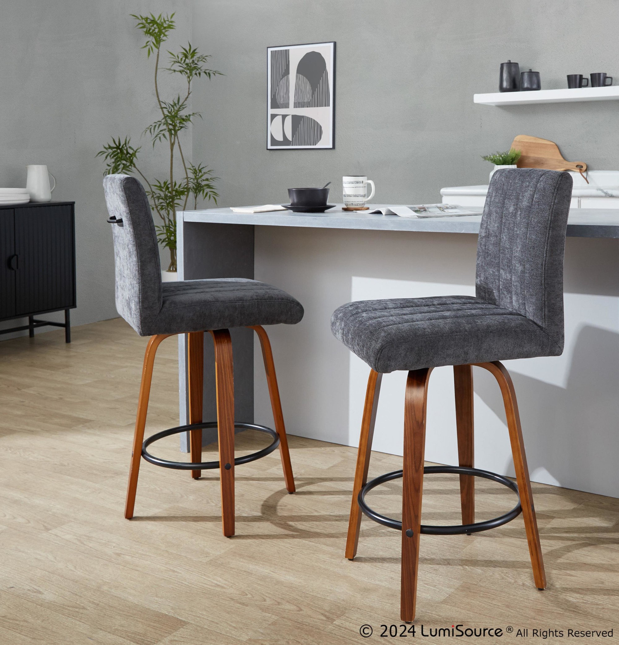 • Fixed counter height with 360-degree swivel