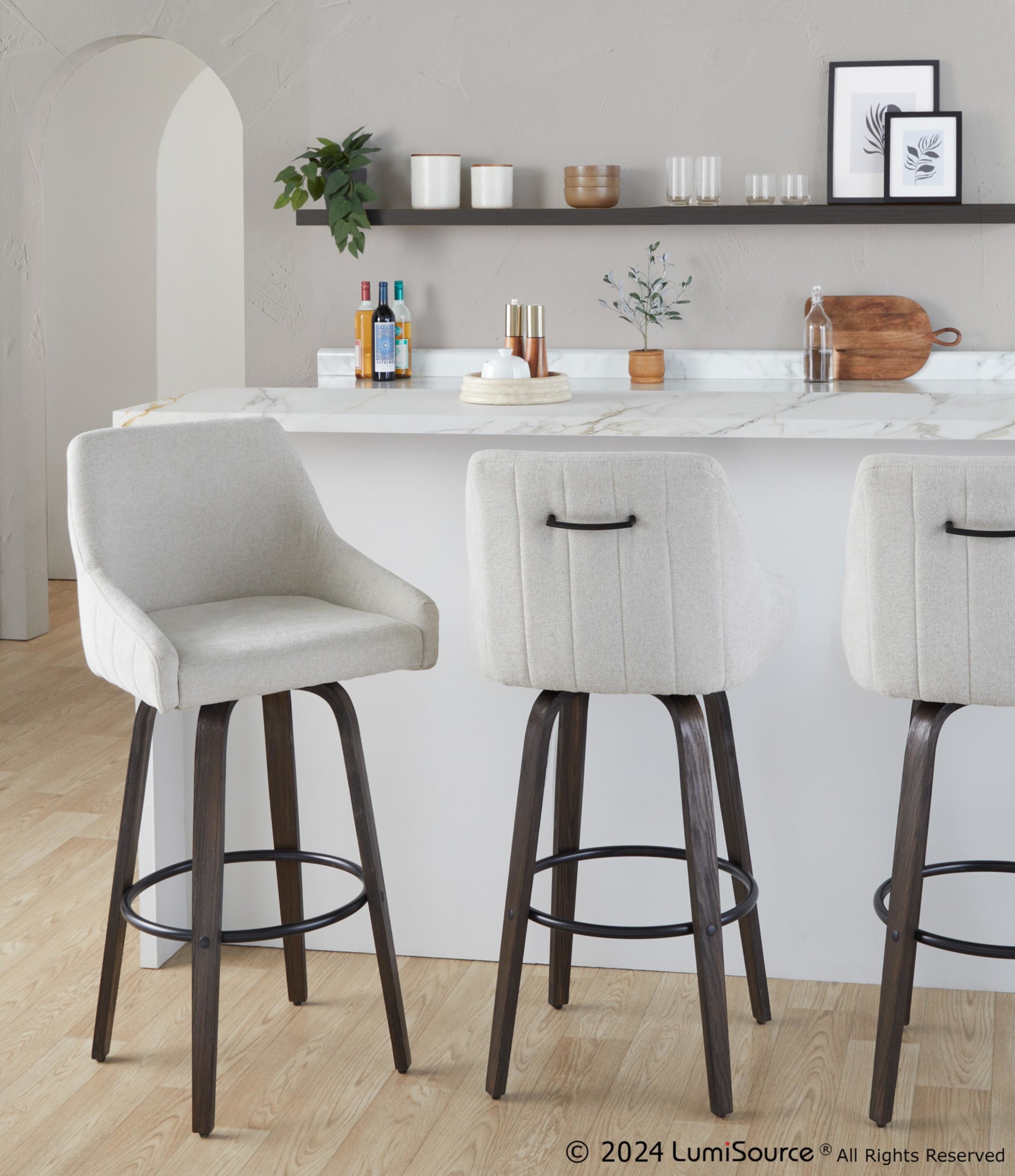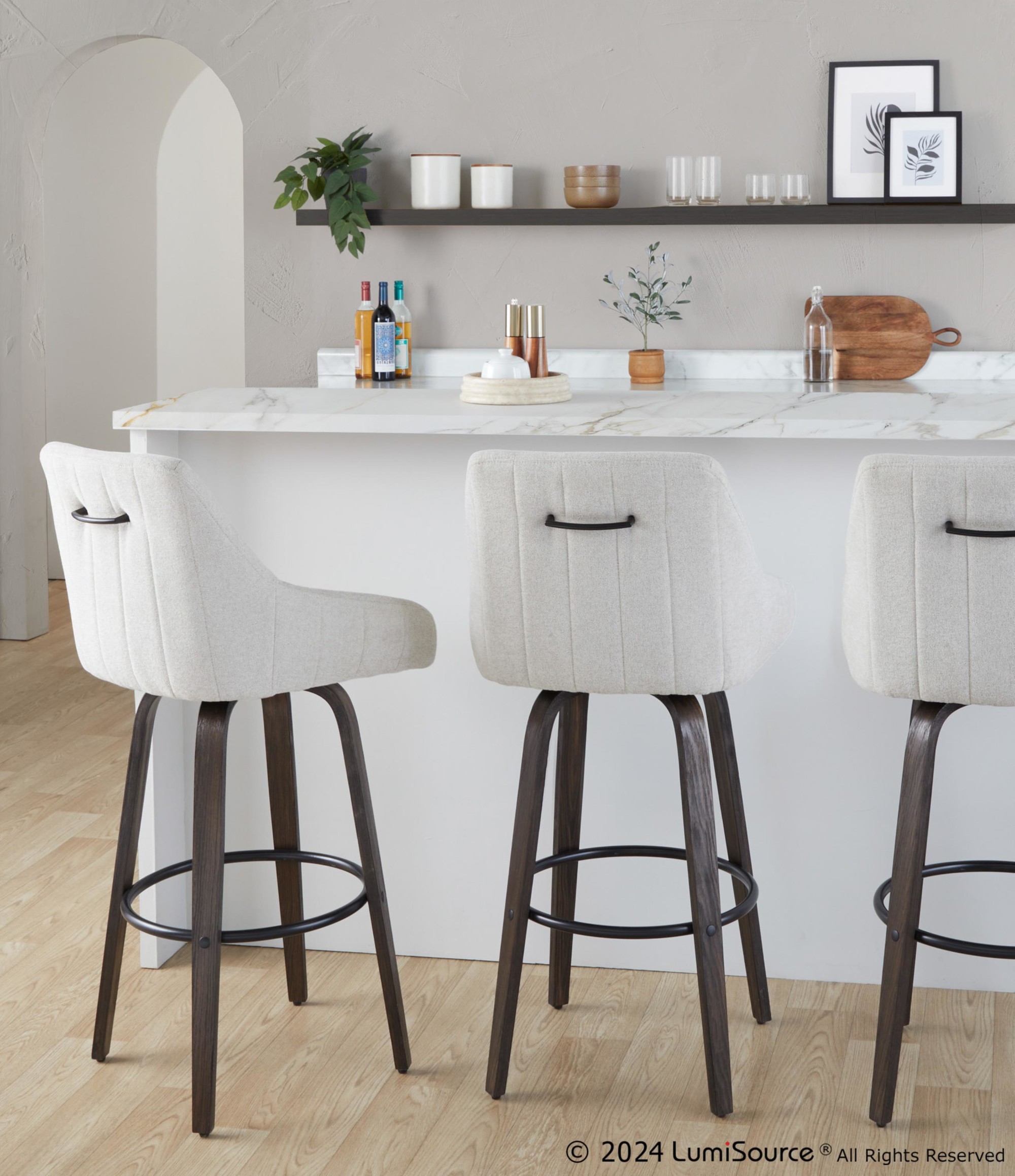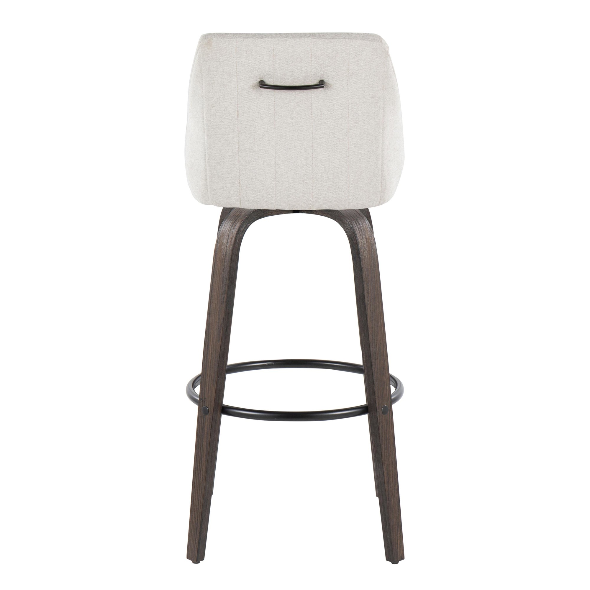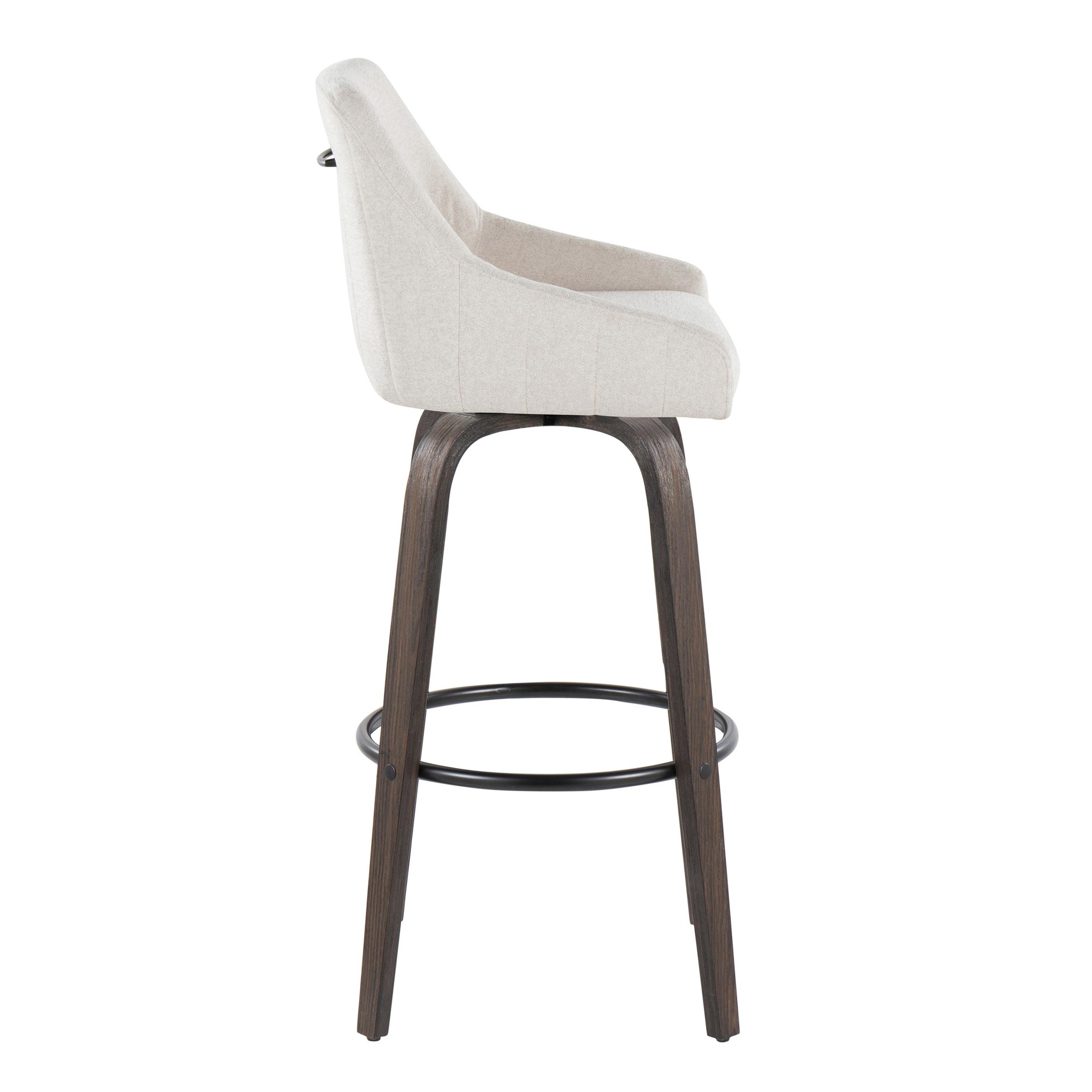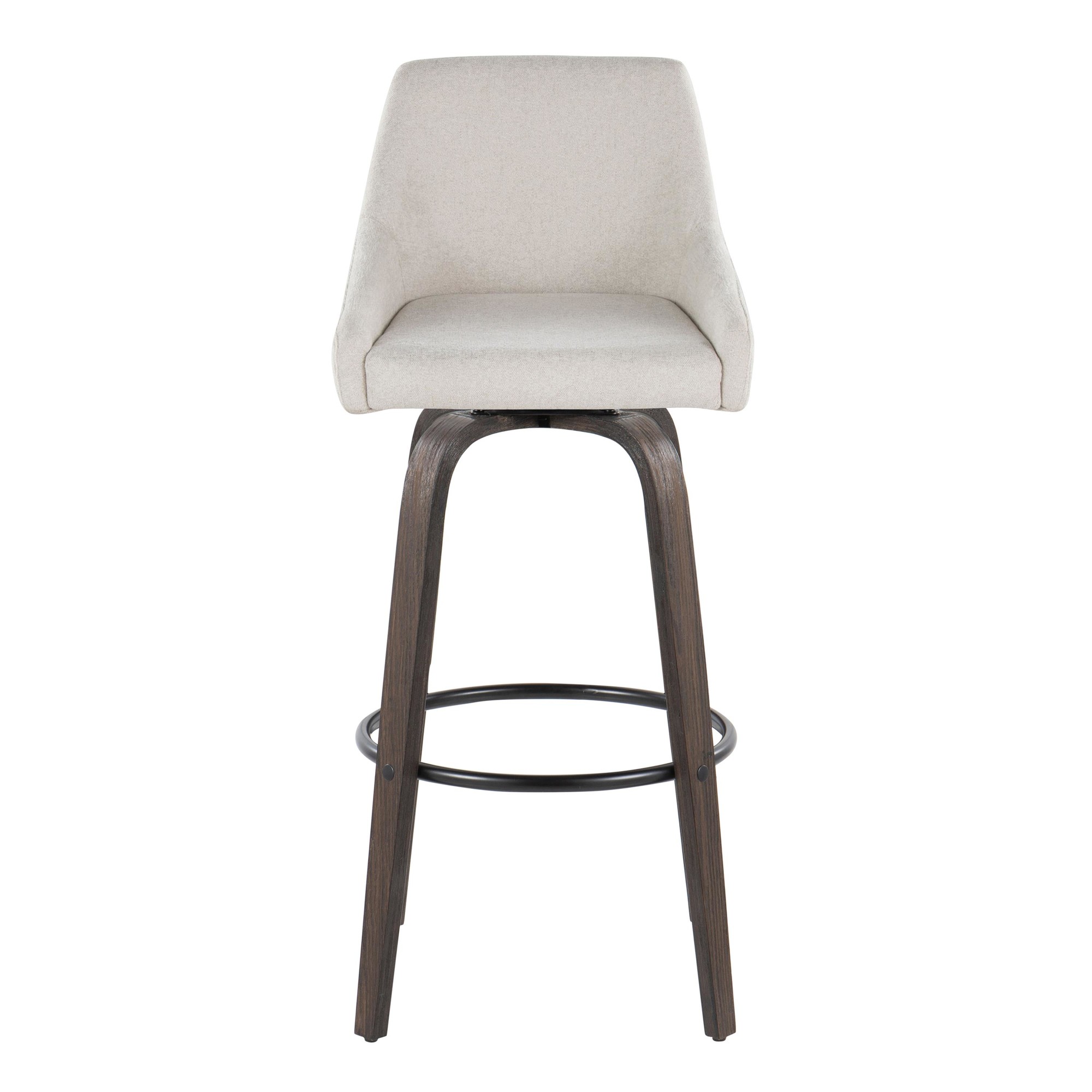 These Hannah Barstools are an elegant and simple way to furnish your eating area in style. Featuring sleek bent wood legs, a comfortable padded upholstered seat, and a decorative handle adorning the seat back, these barstools will elevate any space with their satisfying transitional design. The 360-degree swivel adds extra comfort.