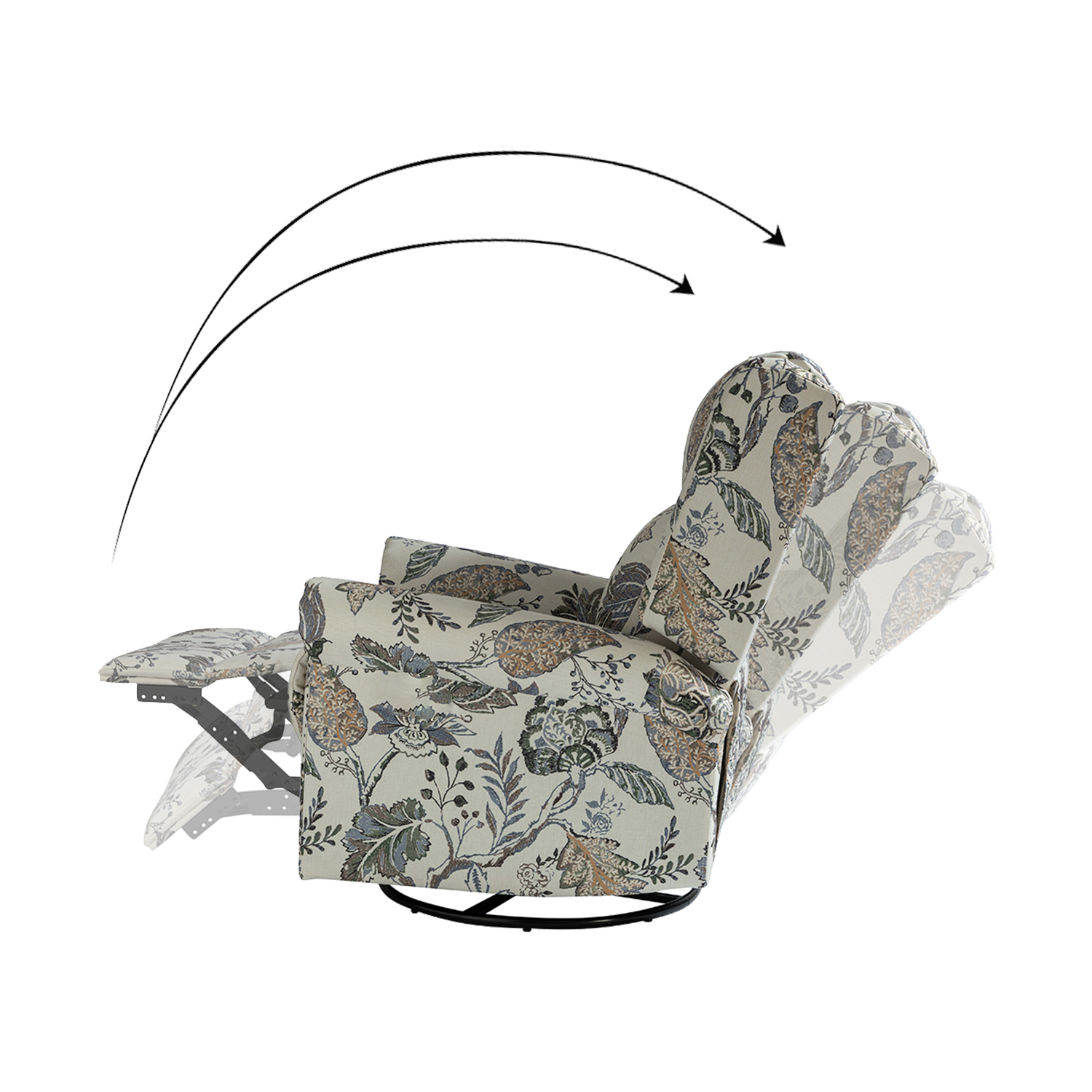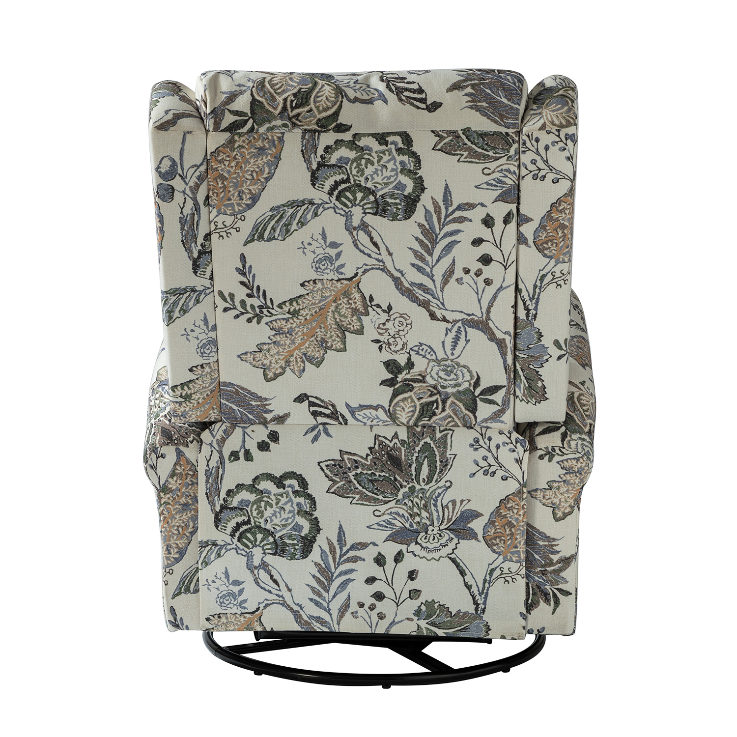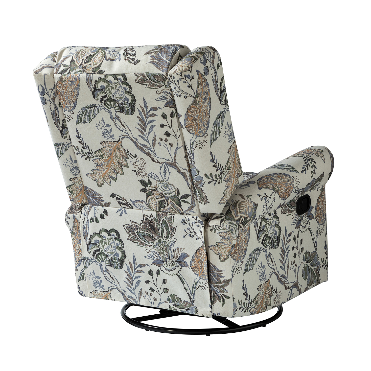 The Helmut Jacobean Linen Swivel Glider Recliner offers a blend of transitional style and ultimate comfort. With its unique backrest, clean lines, and Jacobean floral pattern, this recliner adds a touch of flair to any living space. Enjoy relaxing moments with your favorite book or simply unwind after a long day. The nailhead trim provides an extra touch of vintage charm.
