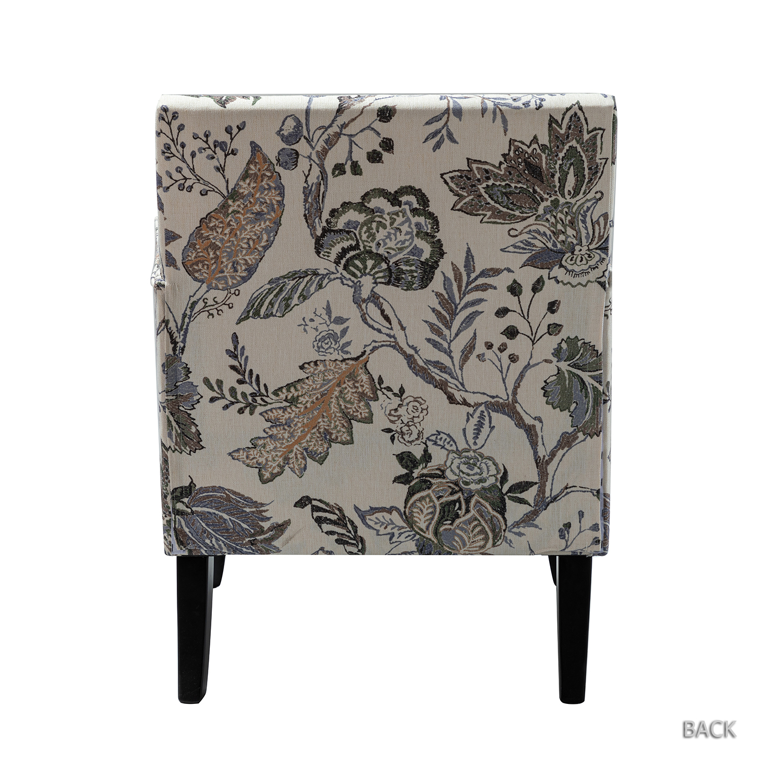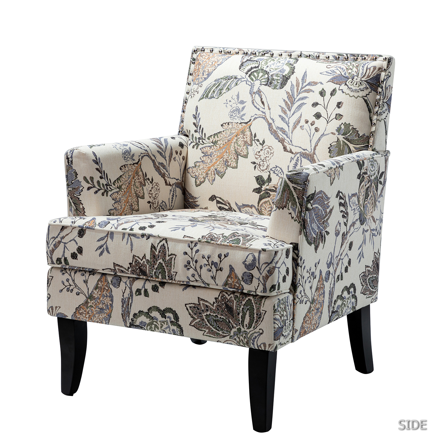 This inviting armchair combines classic style with contemporary design. Featuring a solid birch wood frame, a stylish floral pattern, and gleaming nailhead trim, this chair is a must-have in any home. Its club chair silhouette, complete with a slightly slanted backrest, clean track arms, and tapered block feet, makes it a great addition to any bedroom, living room, or office. Enjoy the comfort and support of high-density foam filling.