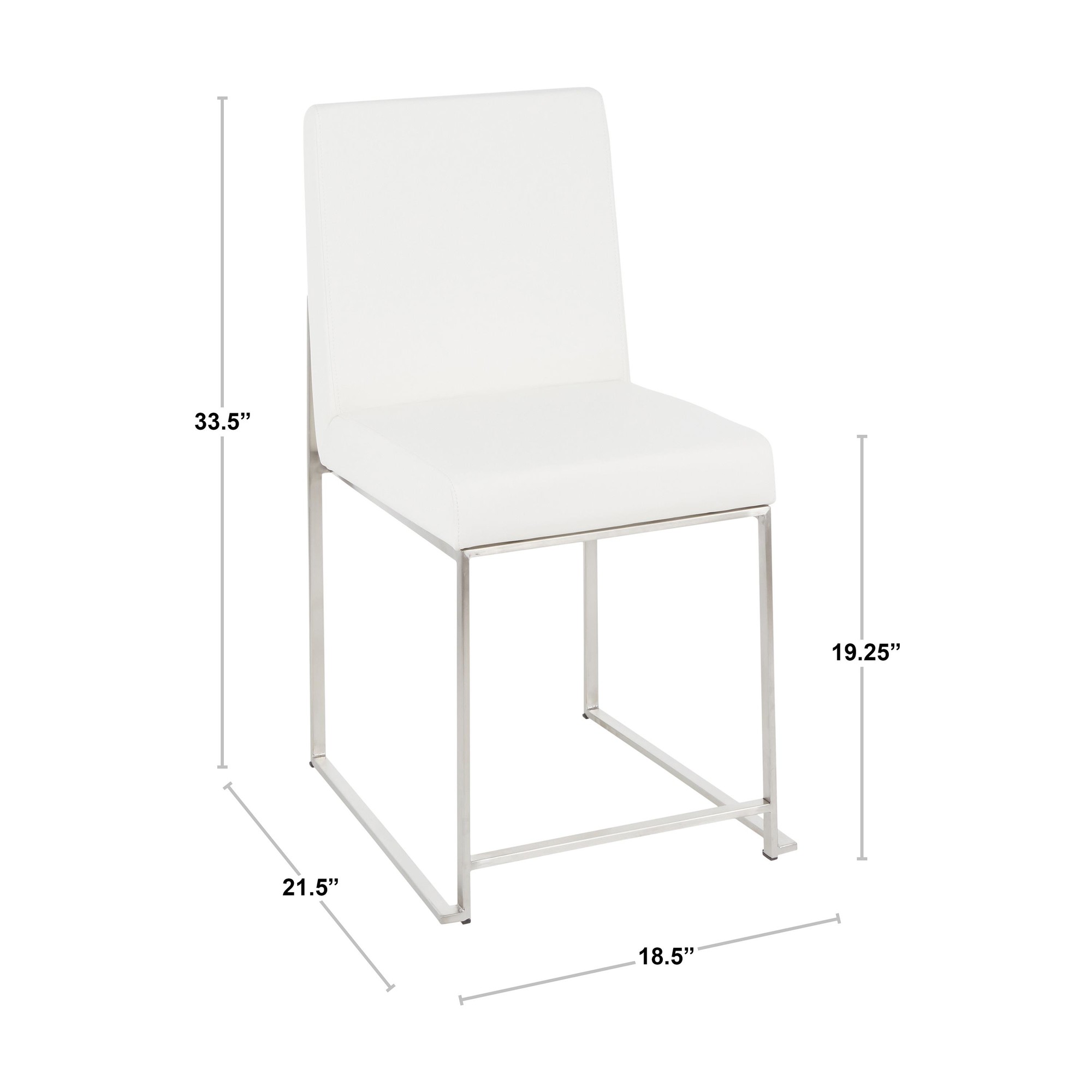 The Fuji High Back Dining Chair offers modern elegance with a comfortable and stylish design. Featuring an extra-wide upholstered seat, a high padded backrest, and a sleek metal frame, these chairs are perfect for elevating your dining experience.