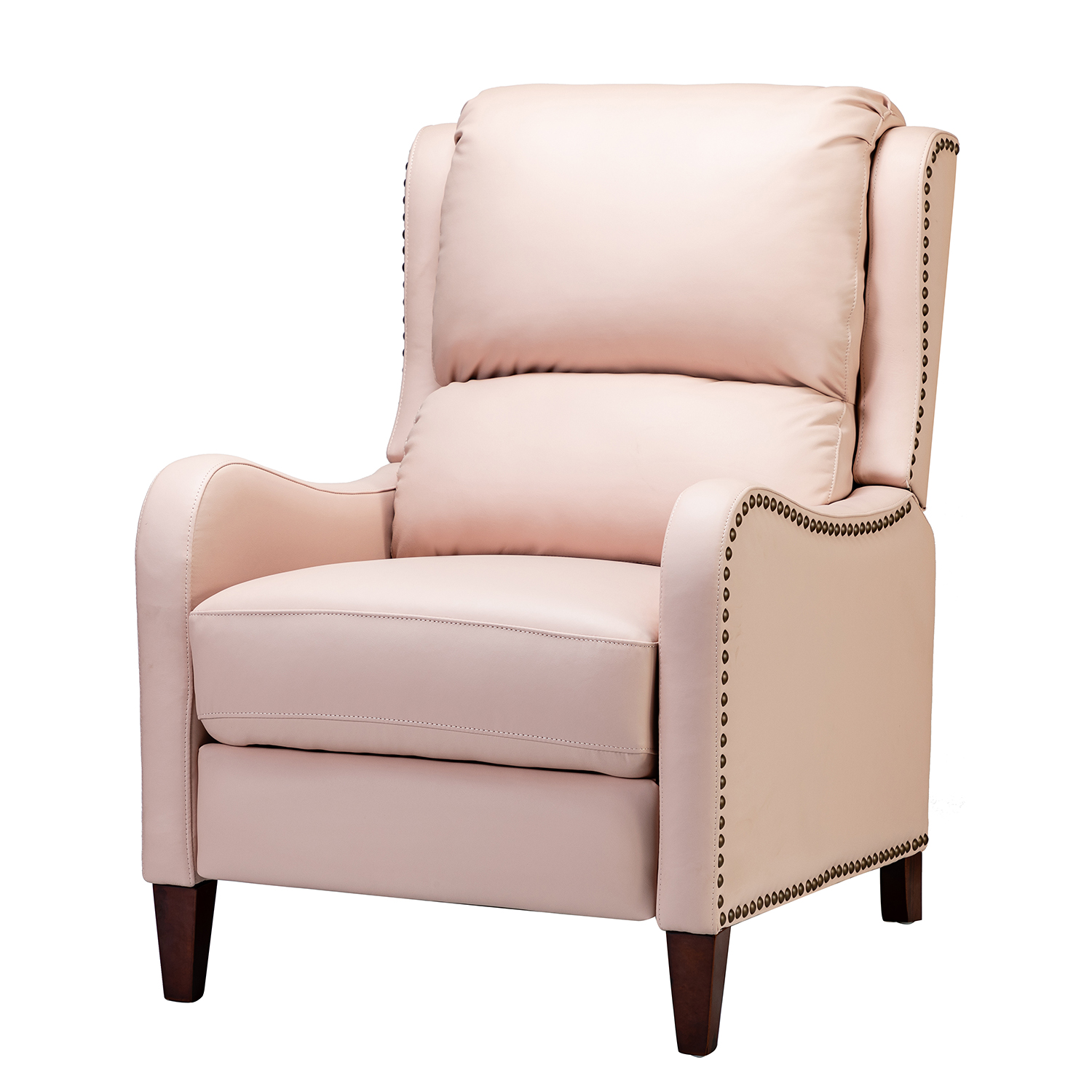 Hyde Pink Leather Mid-Century Modern Wingback Push-Back Recliner