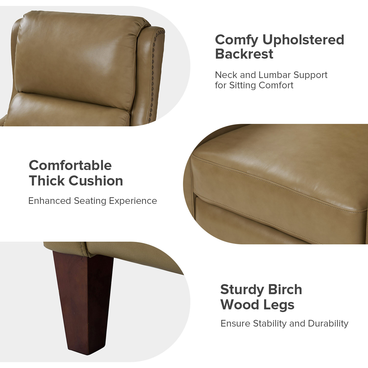 - Effortless Reclining: Easily recline by simply pushing back.
