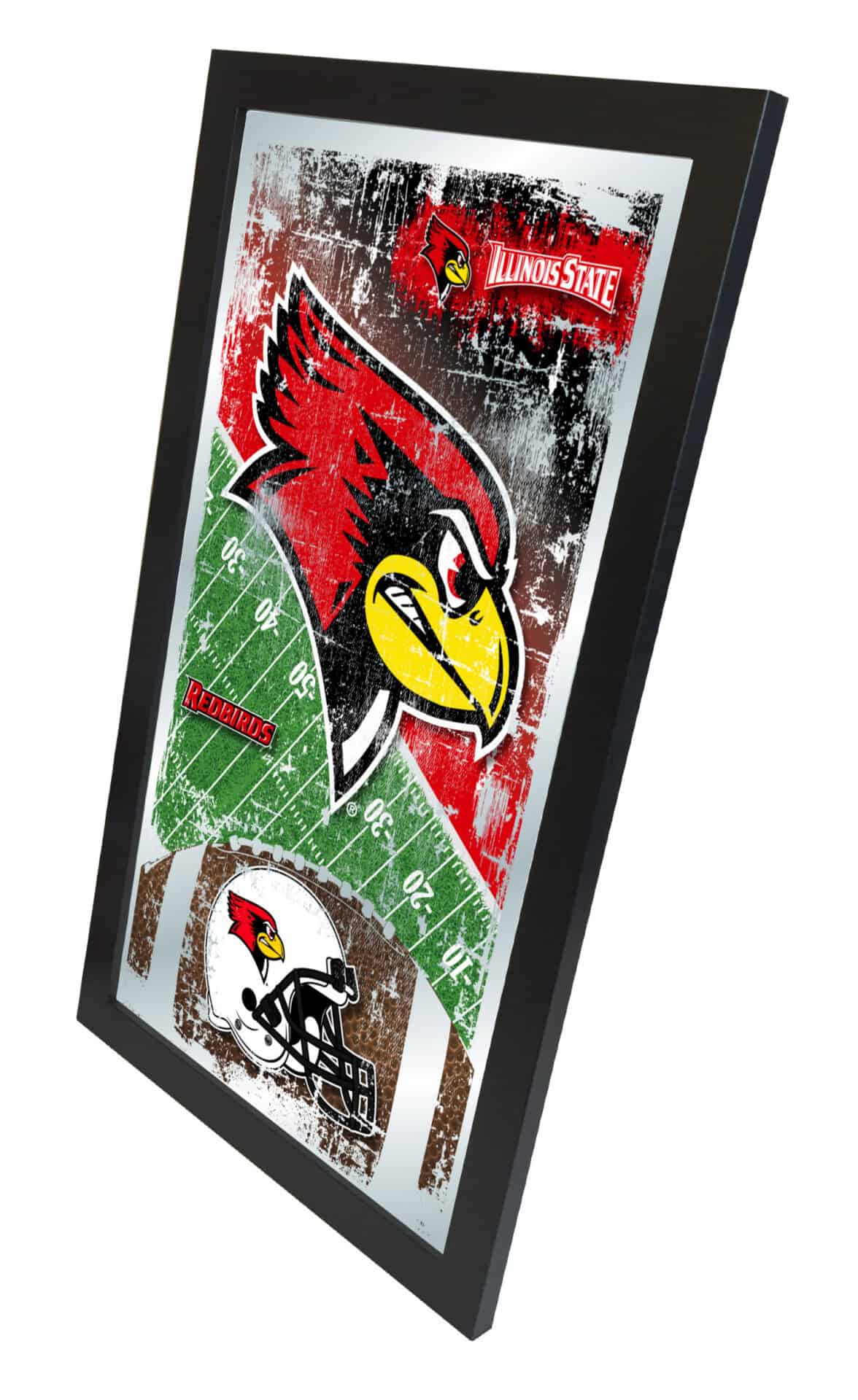 Show your school pride with this Official Licensed Football Mirror. Featuring a simple yet elegant design, the vibrant colors burst through the 1/8″ thick glass, beautifully highlighted by mirrored accents. This mirror is framed with a sleek black, 1 1/4″ wrapped wood frame and equipped with dual saw-tooth hangers for easy mounting. Measuring 15″ in height and 26″ in width, it is the perfect addition to your office, garage, or any room in the house. Ideal as a gift for recent graduates or sports enthusiasts, this mirror combines functionality with a touch of team spirit.