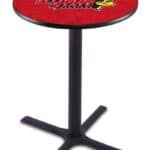 Elevate your space with this stylish and functional 42-inch pub table, designed for fans and enthusiasts alike. Featuring a durable 36-inch laminate top with a vibrant, full-color design, this table is scratch-resistant and easy to clean. Its sturdy cross base, constructed from commercial-quality cast iron and steel, is powder-coated with a black wrinkle finish for a sleek and long-lasting look. Adjustable feet ensure stability on any floor surface, making this table an excellent addition to your bar, game room, or man cave.