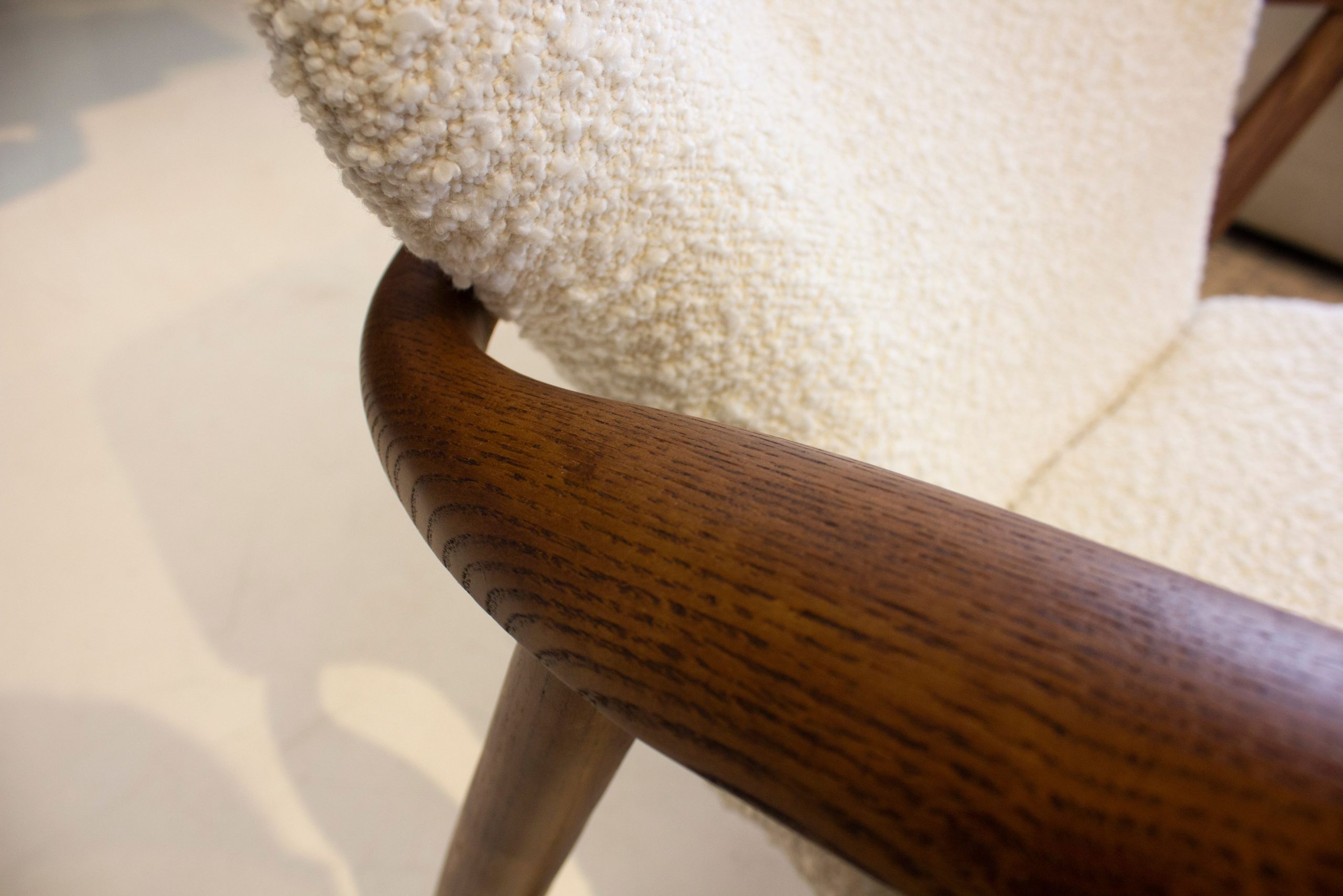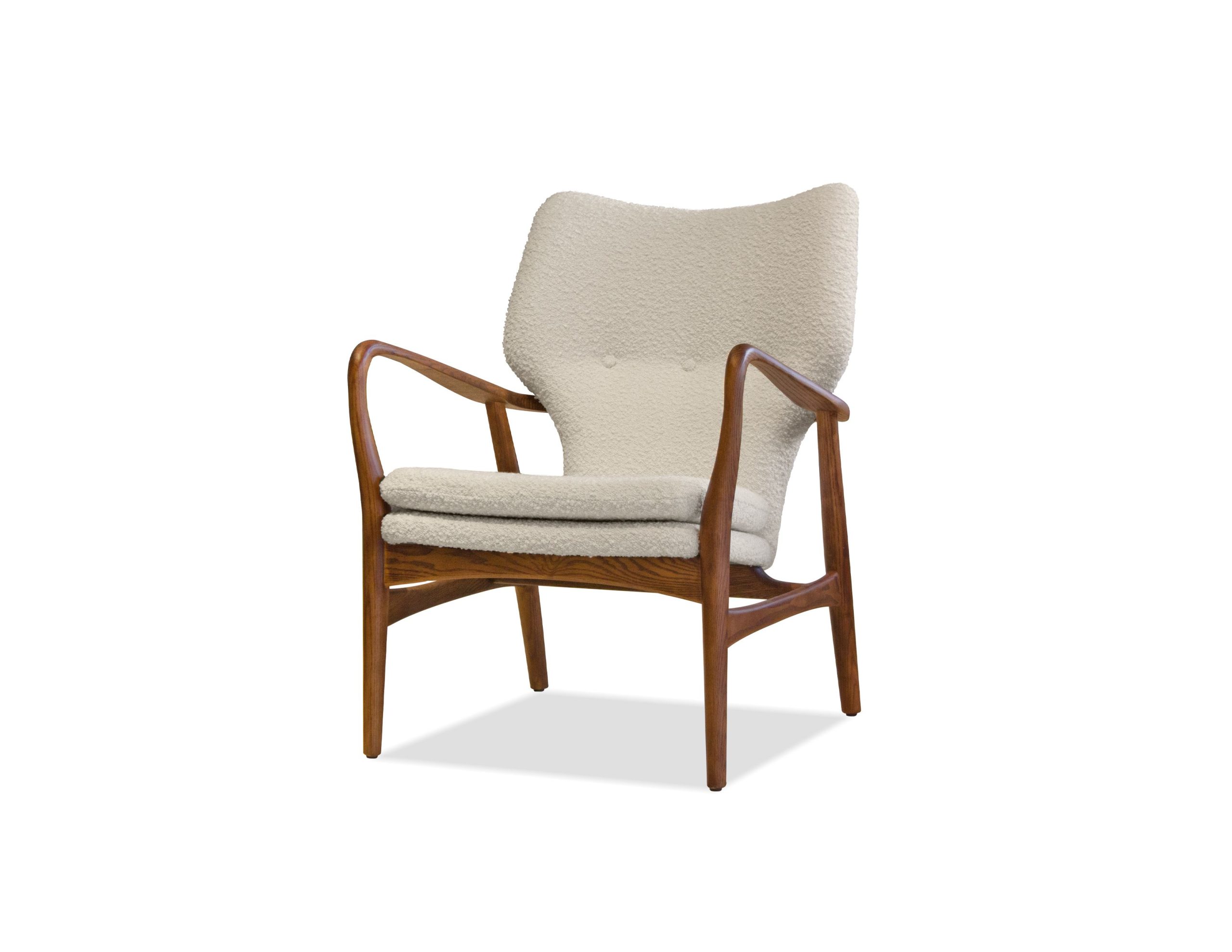 The INGRID chair is more than just a place to sit; it’s a statement piece. The walnut finish on the ash frame provides a touch of warmth and sophistication, while the foam-filled cushions ensure hours of comfortable lounging. Imagine sinking into the soft, cream boucle fabric after a long day. With its unique combination of style and comfort, you might just want two!