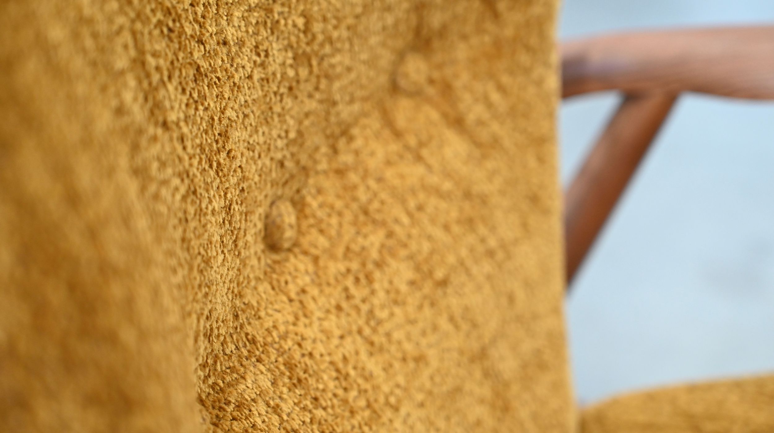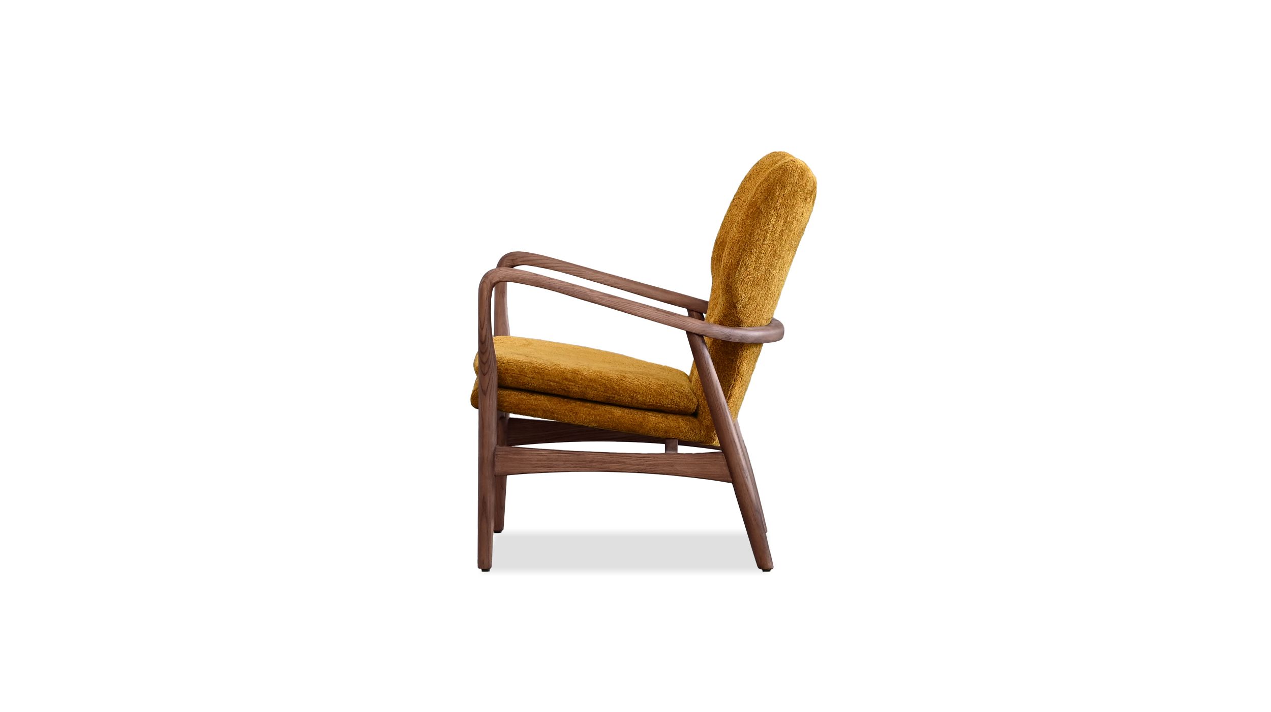 The INGRID lounge chair is an elegant seating option, featuring bentwood arms and plush, curvy fabric upholstery. Its versatile scale and design seamlessly integrate into various decor styles. One INGRID chair enhances any space, but a pair elevates it.