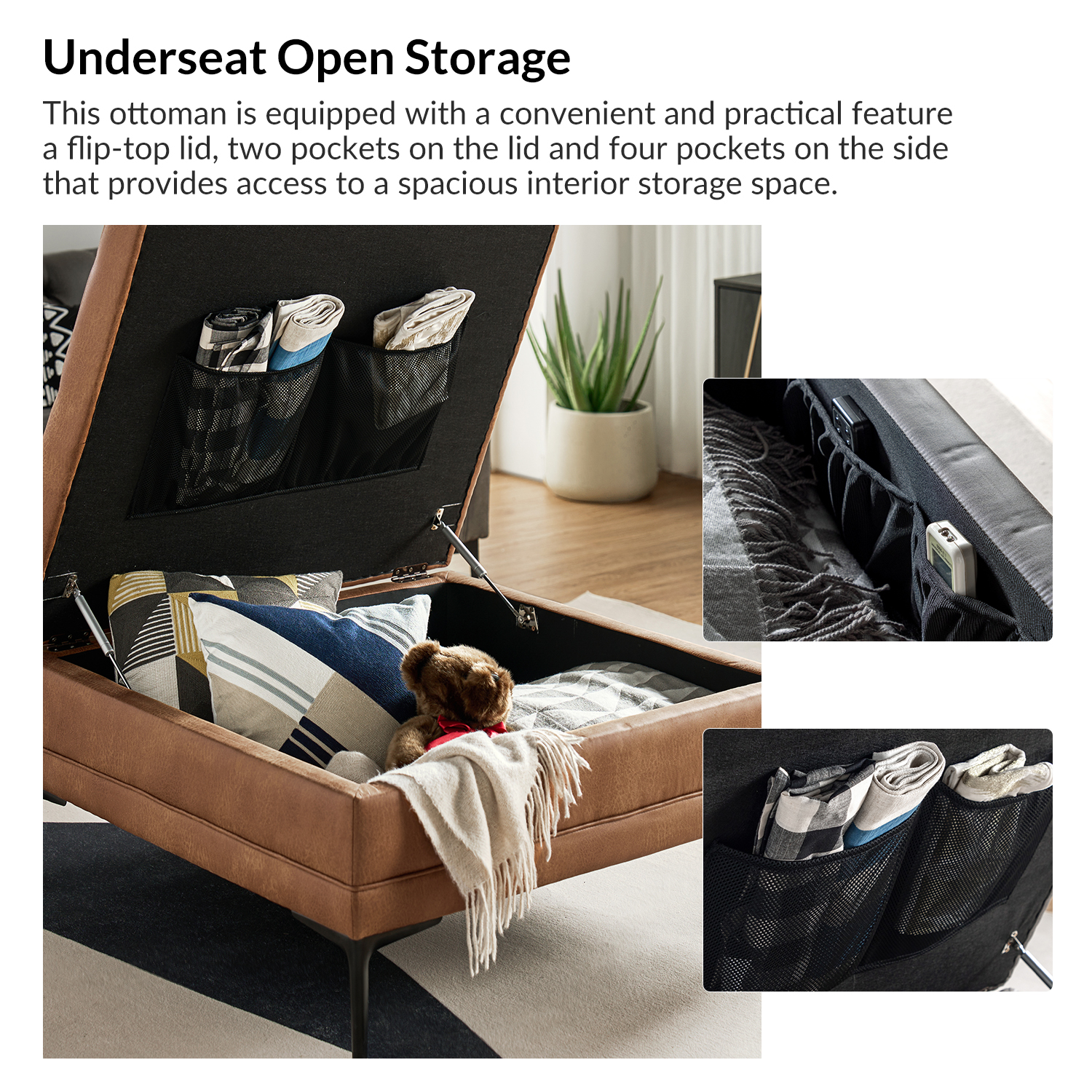 - Extra Storage: A flip-top lid provides easy access to a spacious interior, perfect for storing blankets, pillows, books, and more. Two pockets on the lid and four pockets on the side offer additional organization.