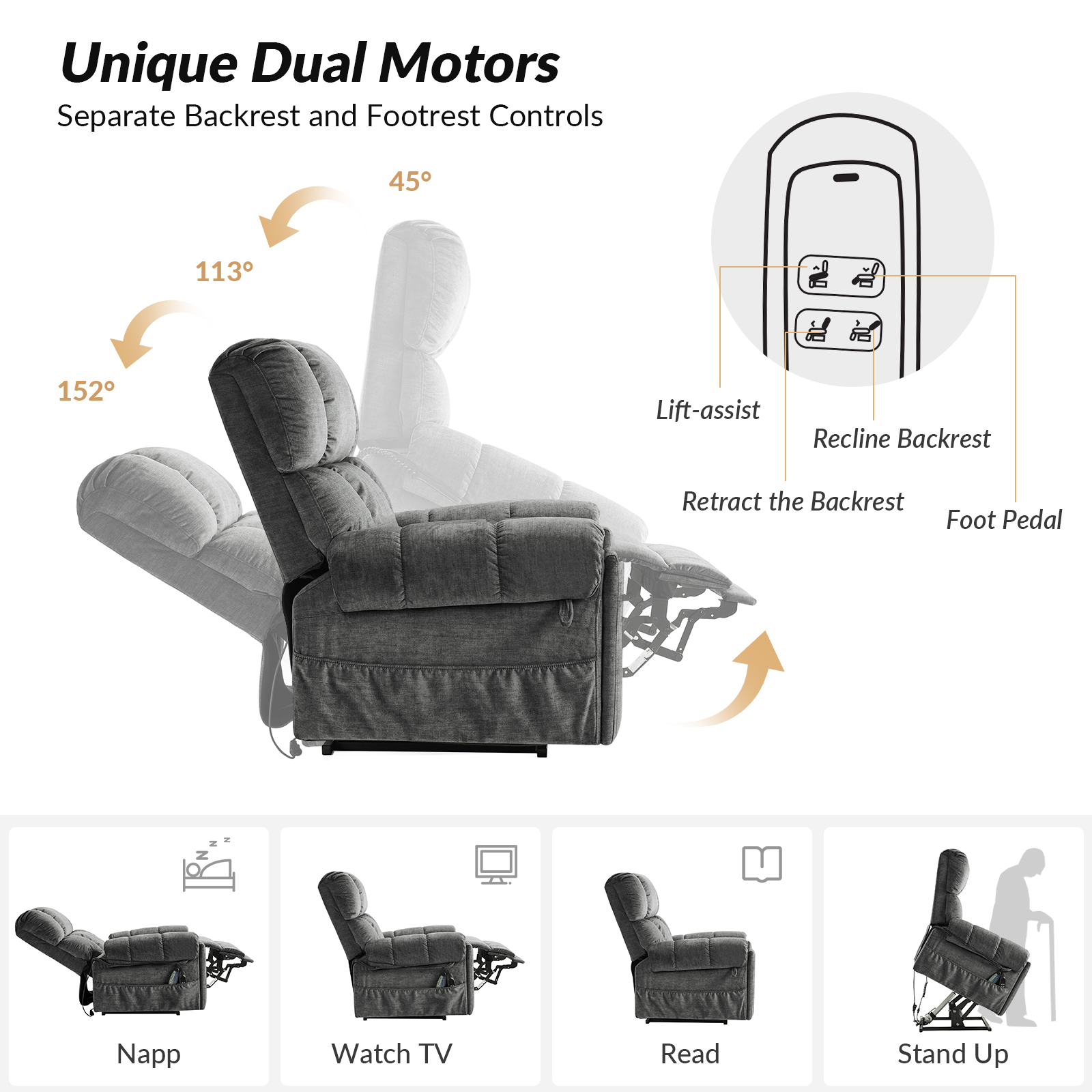 - Electric Lift Mechanism: Robust and quiet, gently raises the chair to assist users in standing.