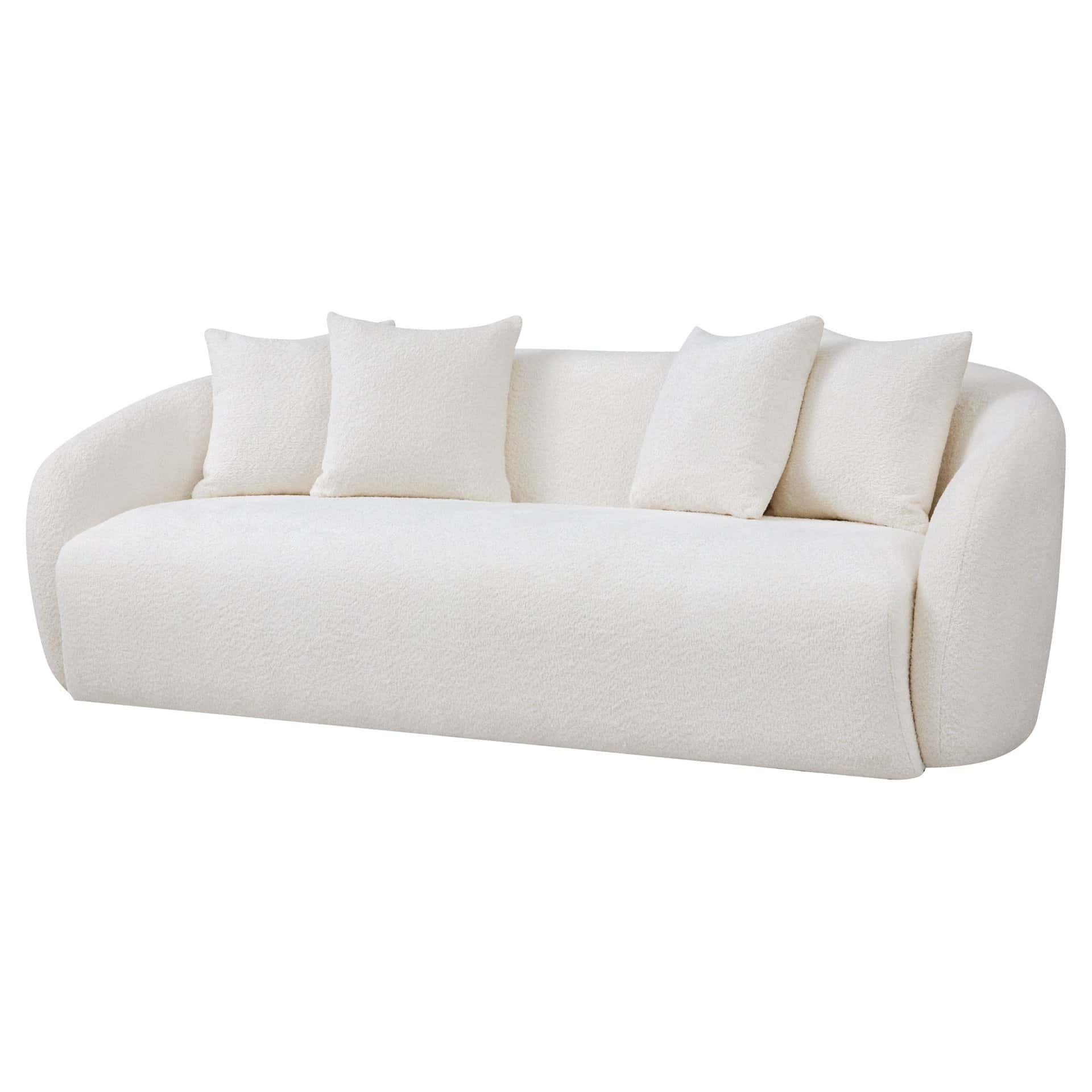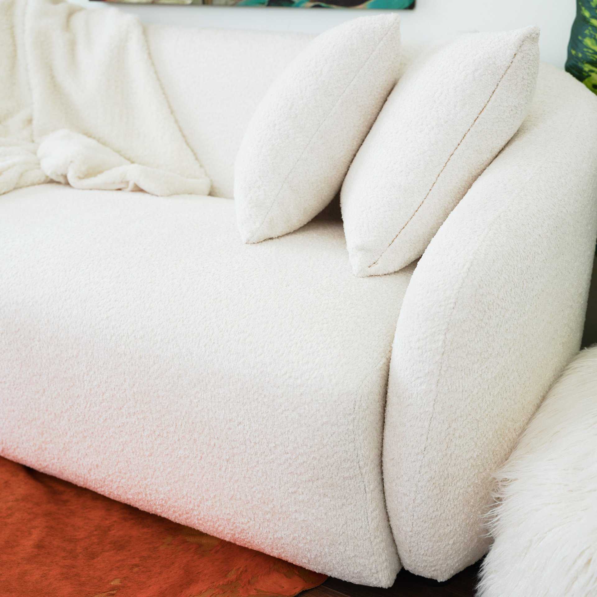 The Ivory Boucle Mid-Century Sofa with Solid Wood Frame is a stunning addition to any man cave, living room, or entertainment space. Combining a luxurious ivory boucle fabric with a sleek mid-century modern design, this sofa exudes elegance and sophistication. Its solid wood construction ensures both durability and longevity, making it a timeless investment for your home. Perfect for lounging, entertaining, or simply adding a touch of refined style, this sofa is as comfortable as it is stylish.