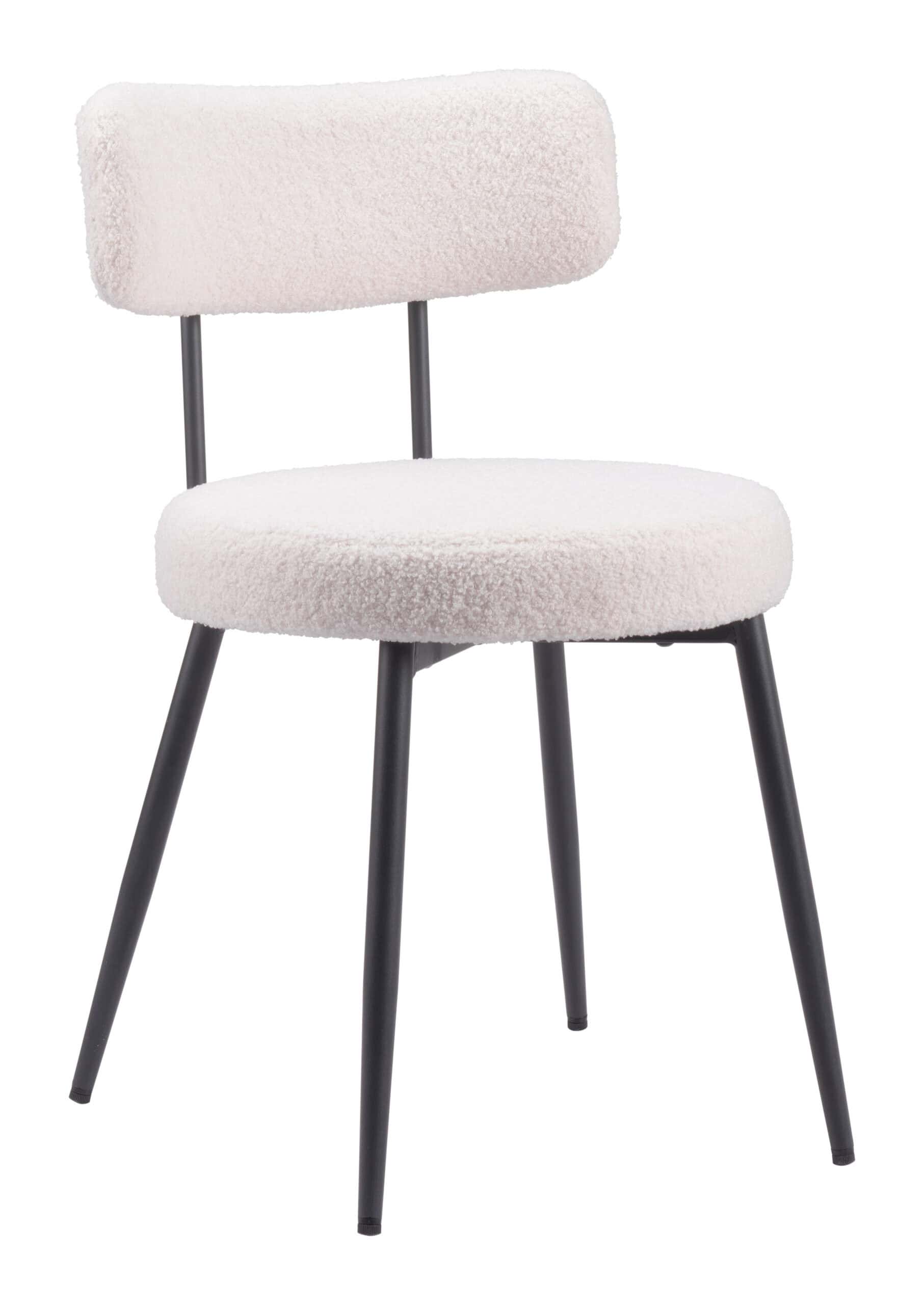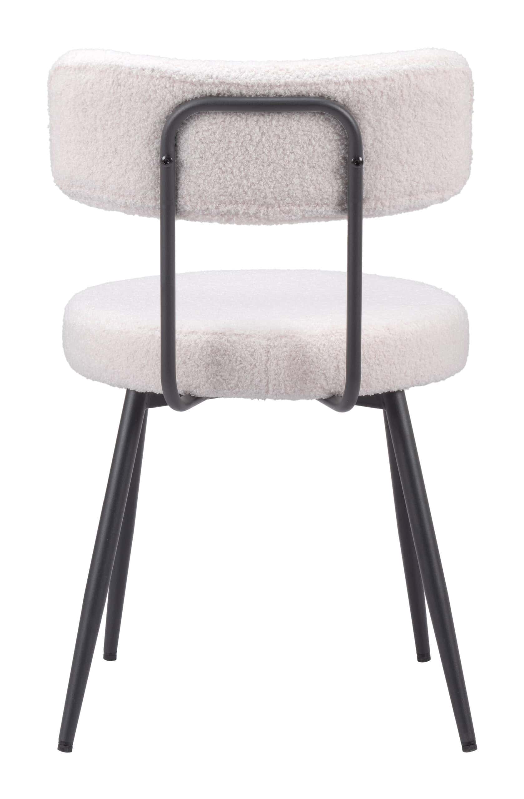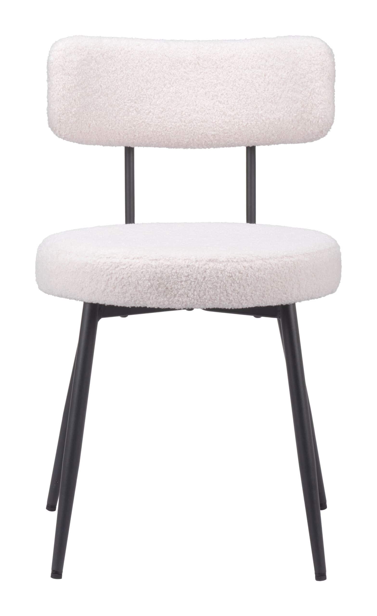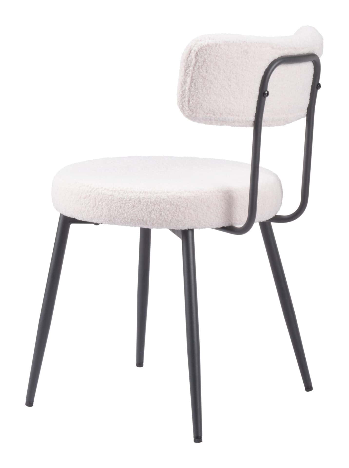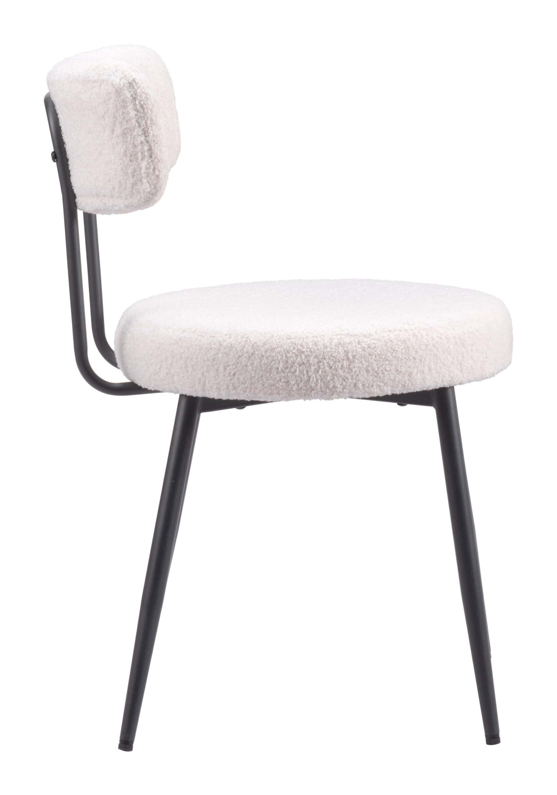 The Ivory Shearling Dining Chair with Black Steel Frame (Set of 2) is a modern and stylish seating option designed to enhance any man cave or dining space. Featuring an ivory polyester seat with a shearling-style fabric, this chair offers both comfort and contemporary style. The sturdy black steel frame adds a sleek, industrial edge, while thoughtful design elements such as a built-in footrest and rubber feet provide added functionality and protection for your floors. This versatile chair is perfect for transforming your dining room or man cave into a sophisticated, comfortable space.