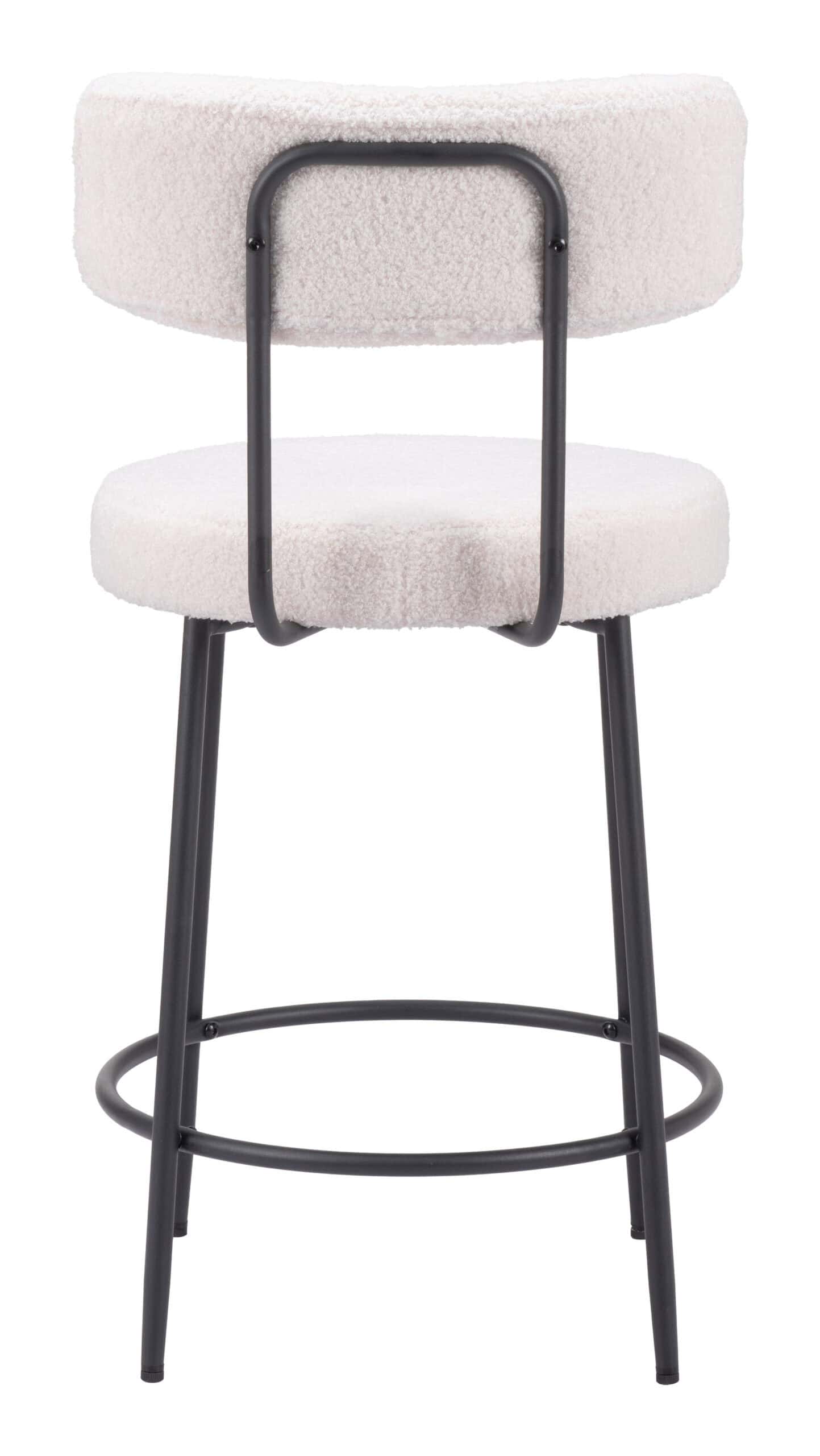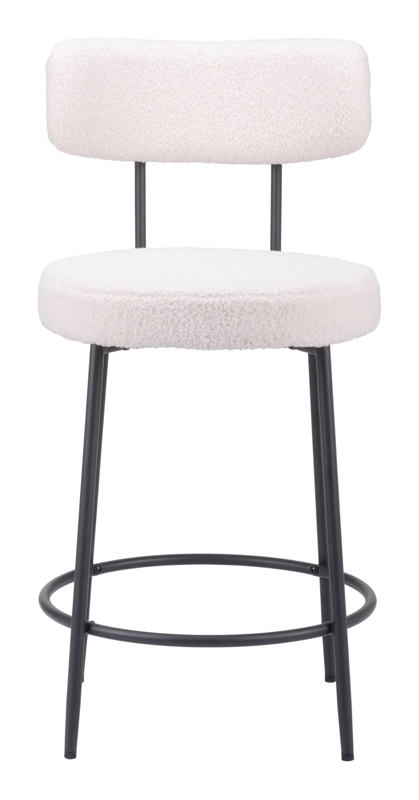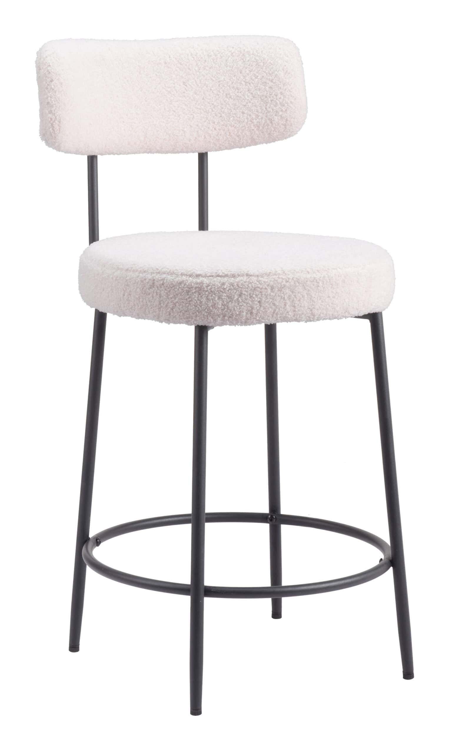 The Ivory Shearling-Style Counter Stool with Steel Frame (Set of 2) offers a blend of comfort, durability, and modern aesthetics. Featuring a soft shearling-style fabric in a sophisticated ivory color, these stools add a touch of elegance to any contemporary space. The sturdy steel frame ensures long-lasting support and stability, while the built-in footrest provides an added layer of comfort. Whether you’re upgrading your home kitchen or furnishing a stylish bar, these stools are a perfect fit.