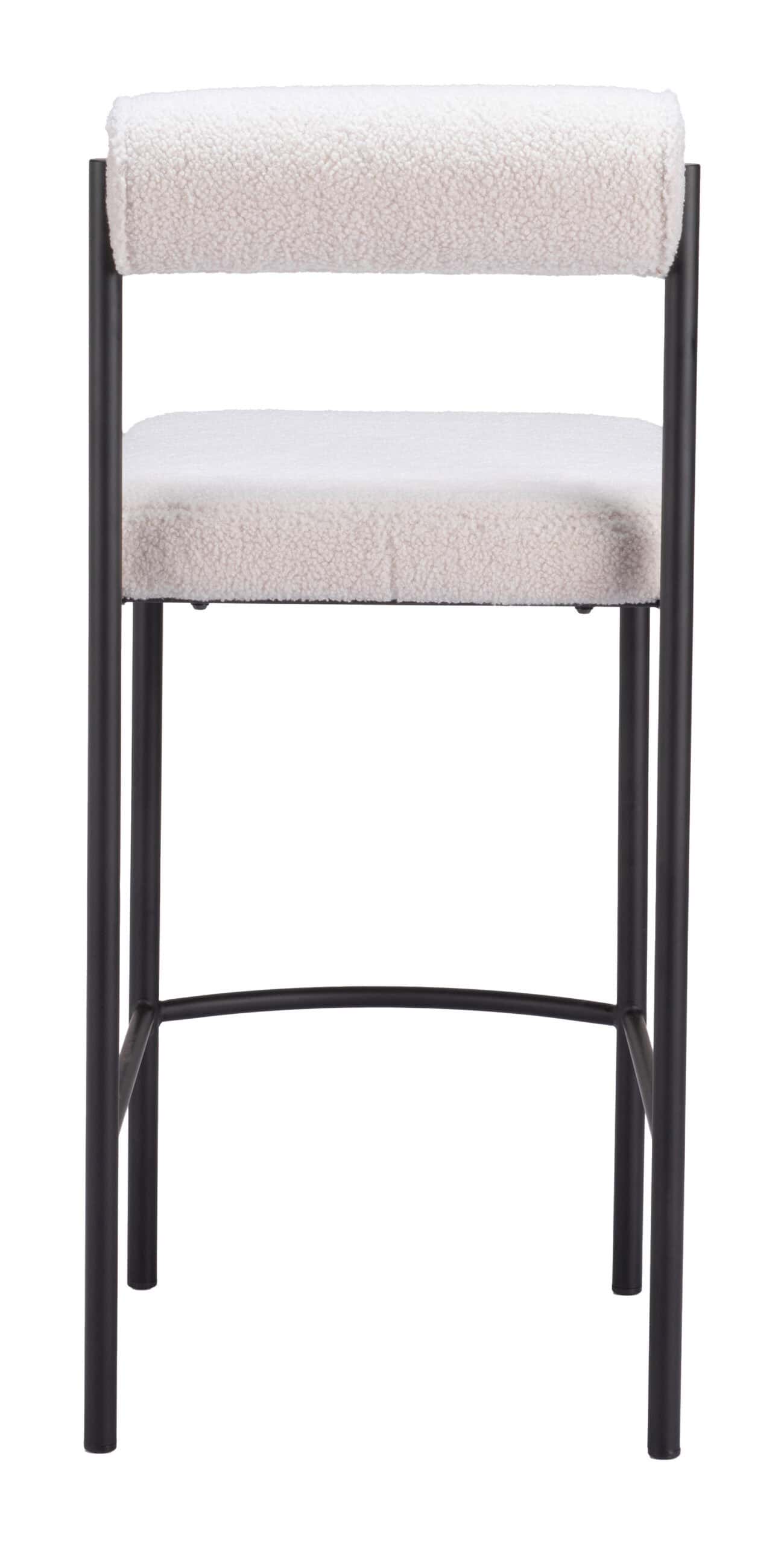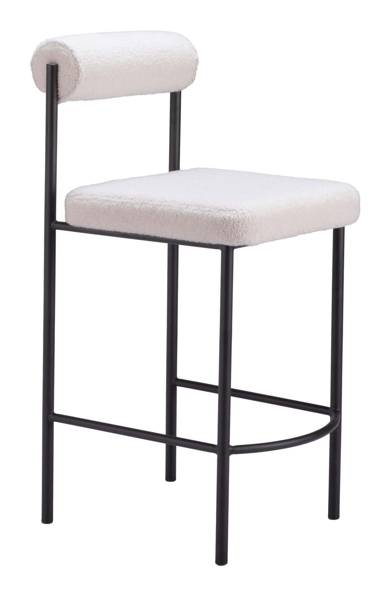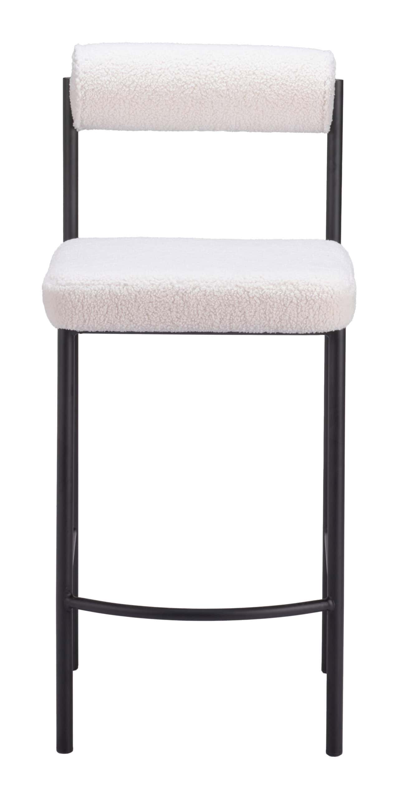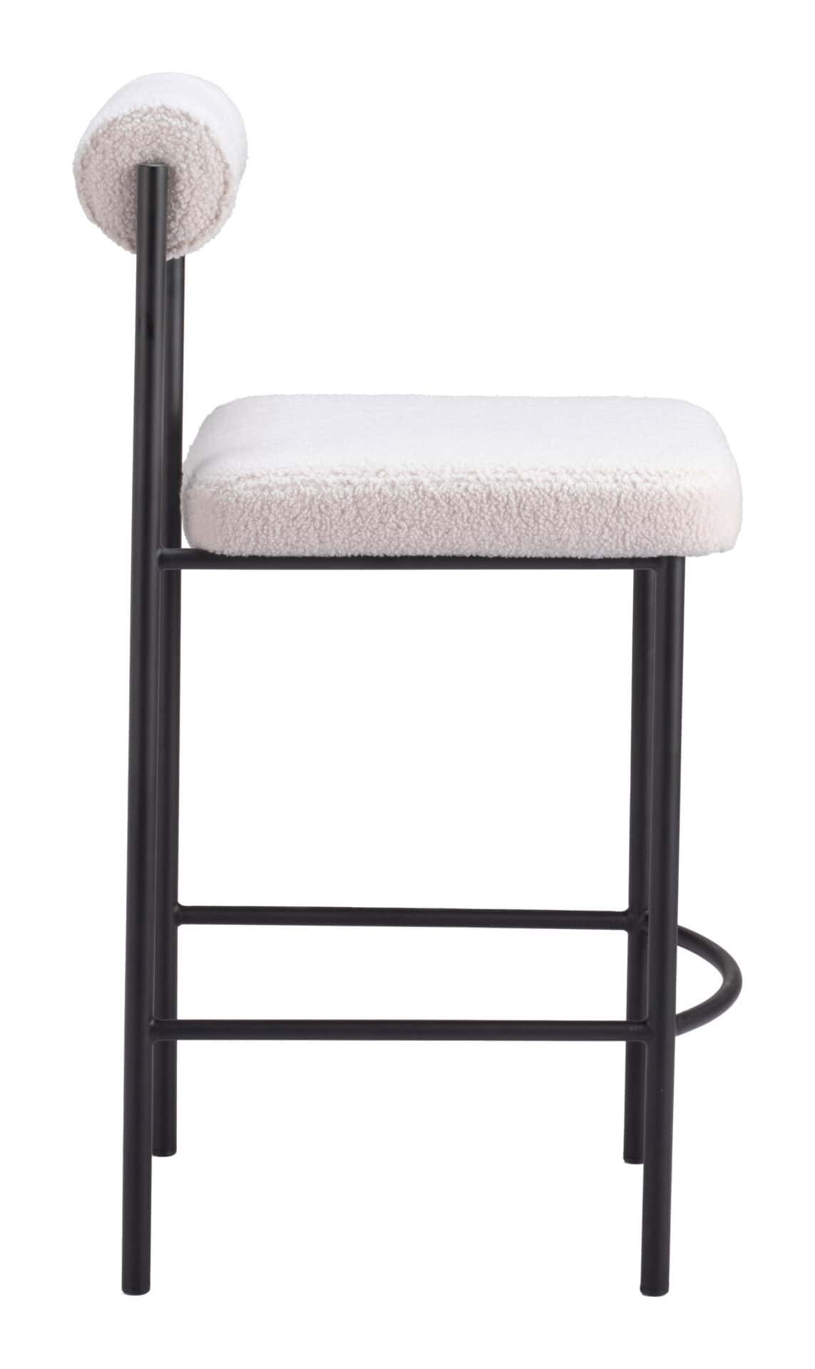 Indulge in superior comfort and style with the Ivory Shearling Style Counter Stools with Black Steel Frame (Set of 2). These stools exude contemporary sophistication with plush teddy fabric upholstery and sleek black steel frames. The generously proportioned seat and built-in footrest ensure a cozy and supportive experience, perfect for enhancing both deco and modern interiors. Whether placed in a kitchen, bar, or man cave, these stools are a versatile and elegant addition to any space.