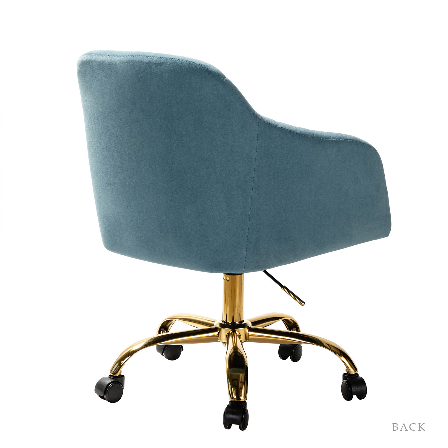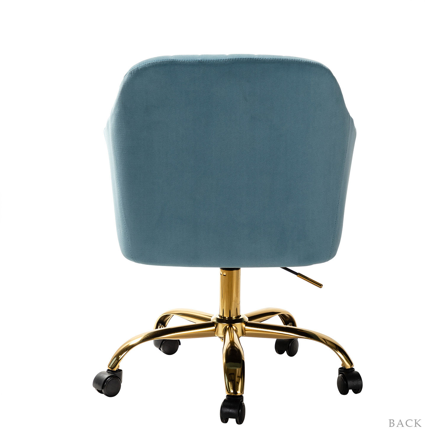 Dive into work or relaxation with the Jacinda Blue Velvet Modern Swivel Adjustable Height Task Chair! This vibrant and stylish chair is a fantastic addition to any office or home office, blending seamlessly with any design aesthetic. Featuring extra plush seating and a lightly tufted seatback, this chair provides cloud-like comfort. Below, five casters ensure effortless mobility, while a pneumatic lever allows for easy height adjustments.