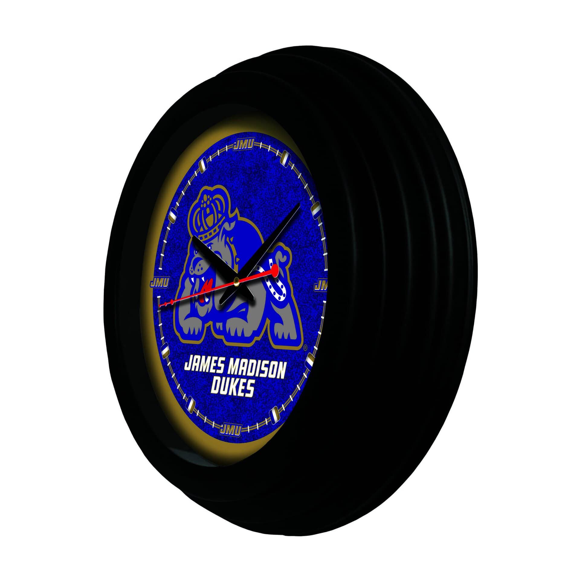 This black cased 15-Inch Wall Clock is the perfect way to show your school pride. Featuring vibrant, full-color digitally printed graphics protected behind a glass lens face, this clock not only keeps time accurately but also enhances your space with its stylish design. The accurate quartz movement ensures precise timekeeping and is powered by a single AA battery (not included). With a recessed hanger, the clock hangs flat against the wall for a clean, finished look, making it an ideal gift for a recent graduate, a sports super fan, or even for personal use.