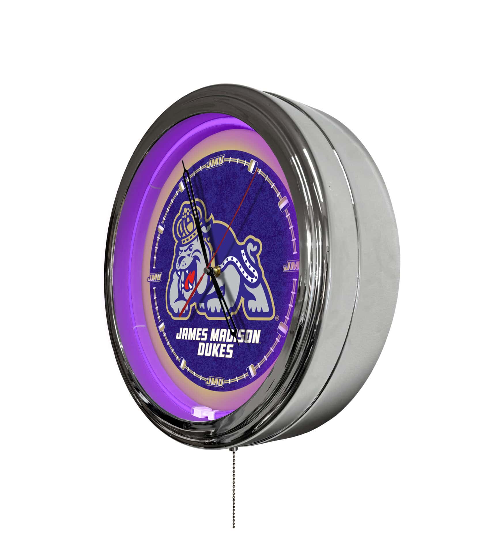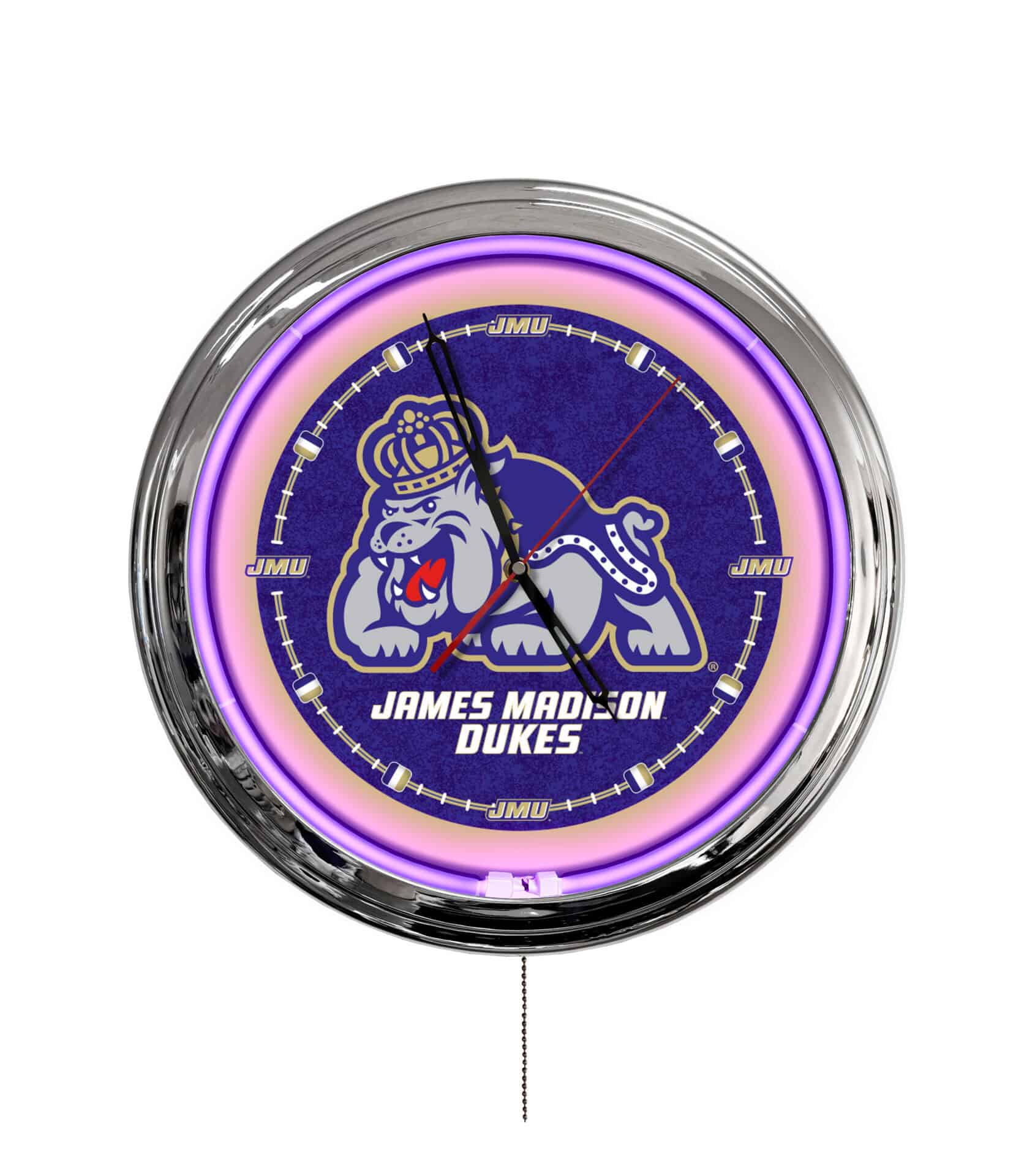The James Madison University 16-Inch LED Wall Clock in Chrome combines functionality and style, making it the perfect addition to any man cave. This innovative clock features a vibrant LED display with multiple color options, allowing you to customize your space effortlessly. With its sleek chrome casing and illuminated logos, it adds a modern touch while keeping you on time. Enjoy flexibility with 20 static colors and 19 dynamic modes, all adjustable via a convenient wireless remote. This clock not only enhances your decor but also ensures accurate timekeeping with its quartz movement.