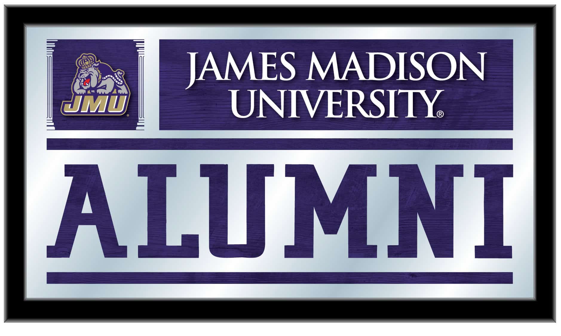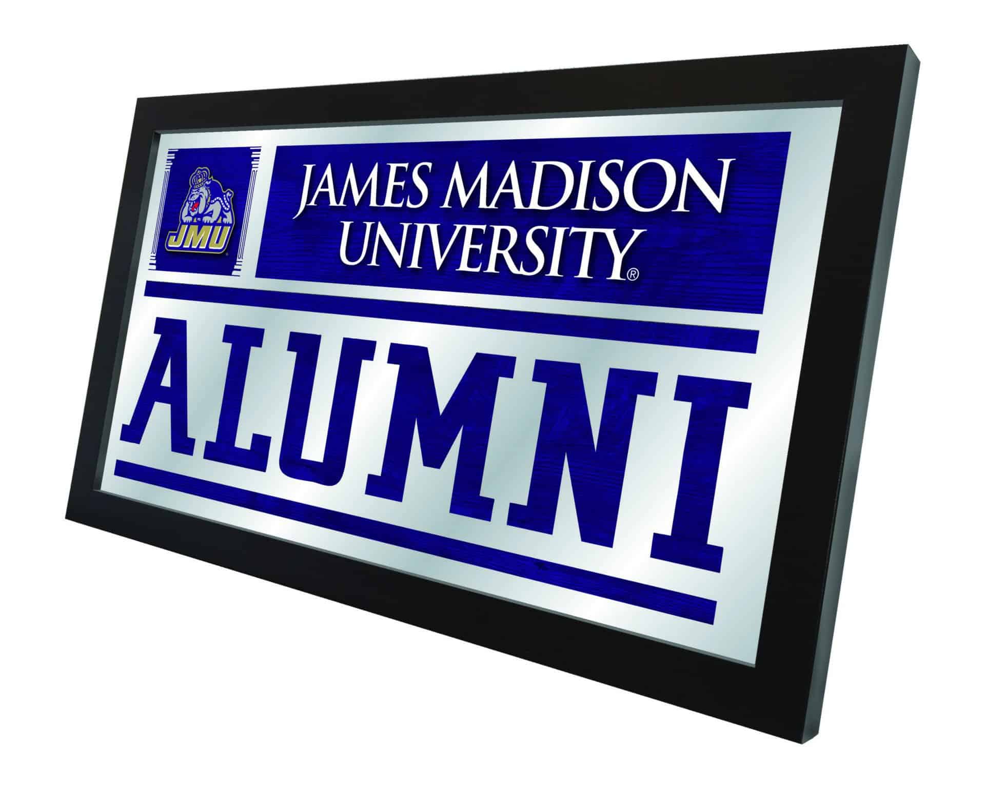 Show your school pride with the James Madison University 26×15 Alumni Wall Mirror. This mirror features a simple yet elegant design that showcases your school colors through the 1/8″ thick glass, beautifully highlighted by mirrored accents. Framed in a stylish black, 1 1/4″ wrapped wood frame, it comes equipped with saw tooth hangers for easy mounting. Measuring 26 inches in height and 15 inches in width, this mirror is the perfect addition to your office, garage, or any room in your home. Ideal as a gift for recent graduates or as a personal keepsake, this mirror stands as a proud representation of your alumni status.