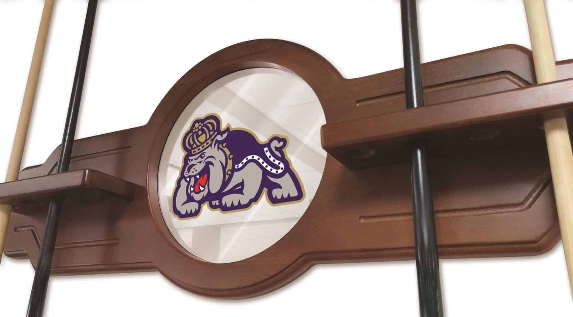 Elevate your game room with this premium James Madison University Navajo Logo Cue Rack. Designed for serious pool enthusiasts, this high-quality cue rack combines functional storage with stylish team spirit. Crafted with meticulous attention to detail, the rack offers secure and elegant storage for your pool cues while showcasing your university pride.