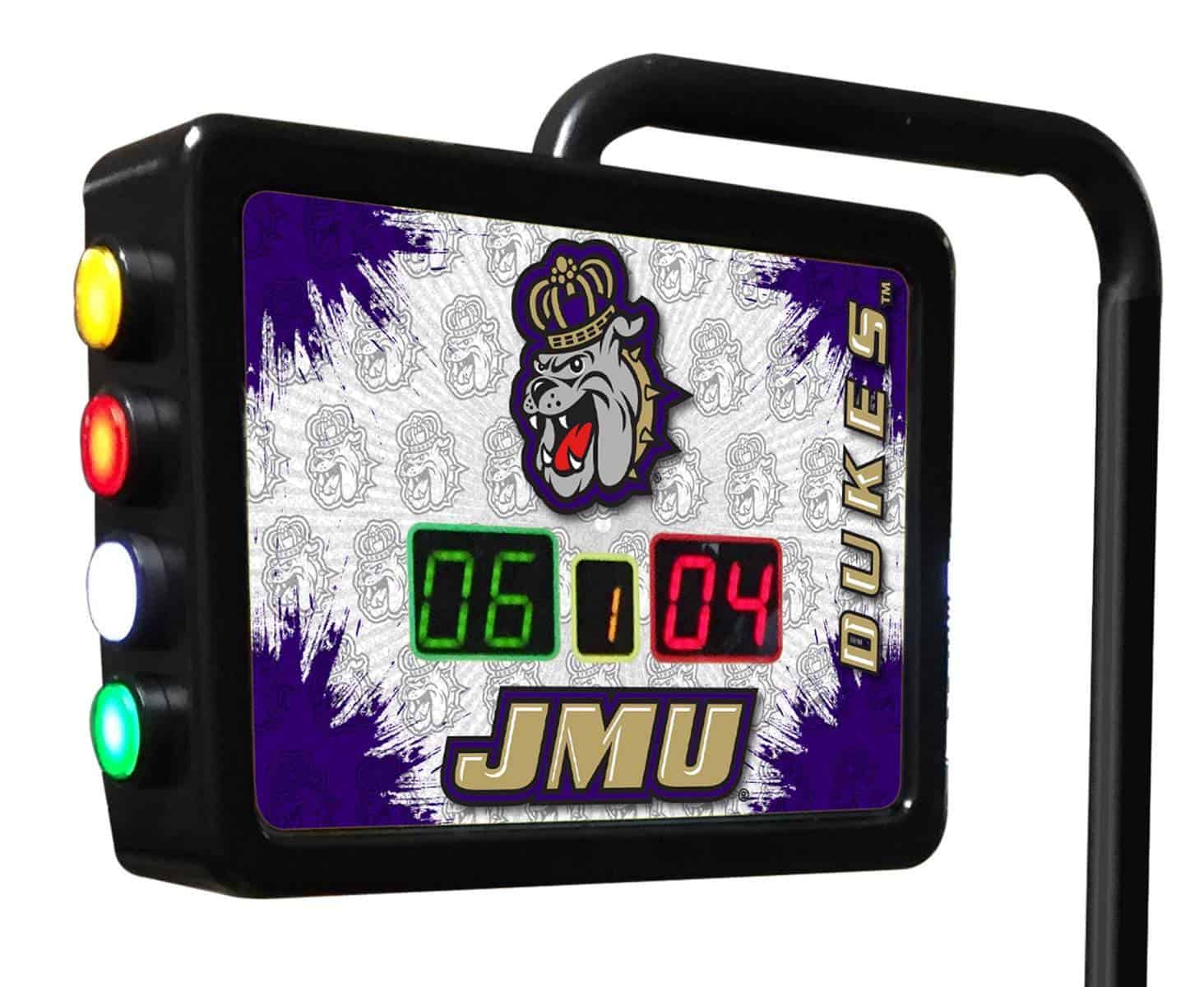 Enhance your shuffleboard gaming experience with this officially licensed electronic scoring unit designed for James Madison University fans. This innovative scoring system eliminates manual score tracking, providing a seamless and enjoyable gaming experience. The digital numeric displays make keeping track of scores and rounds simple and intuitive.