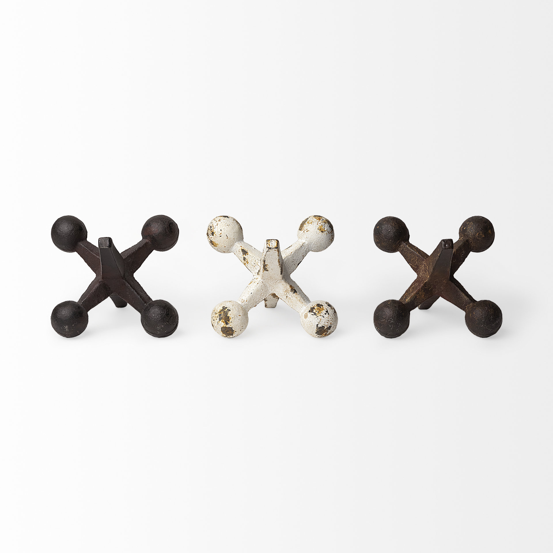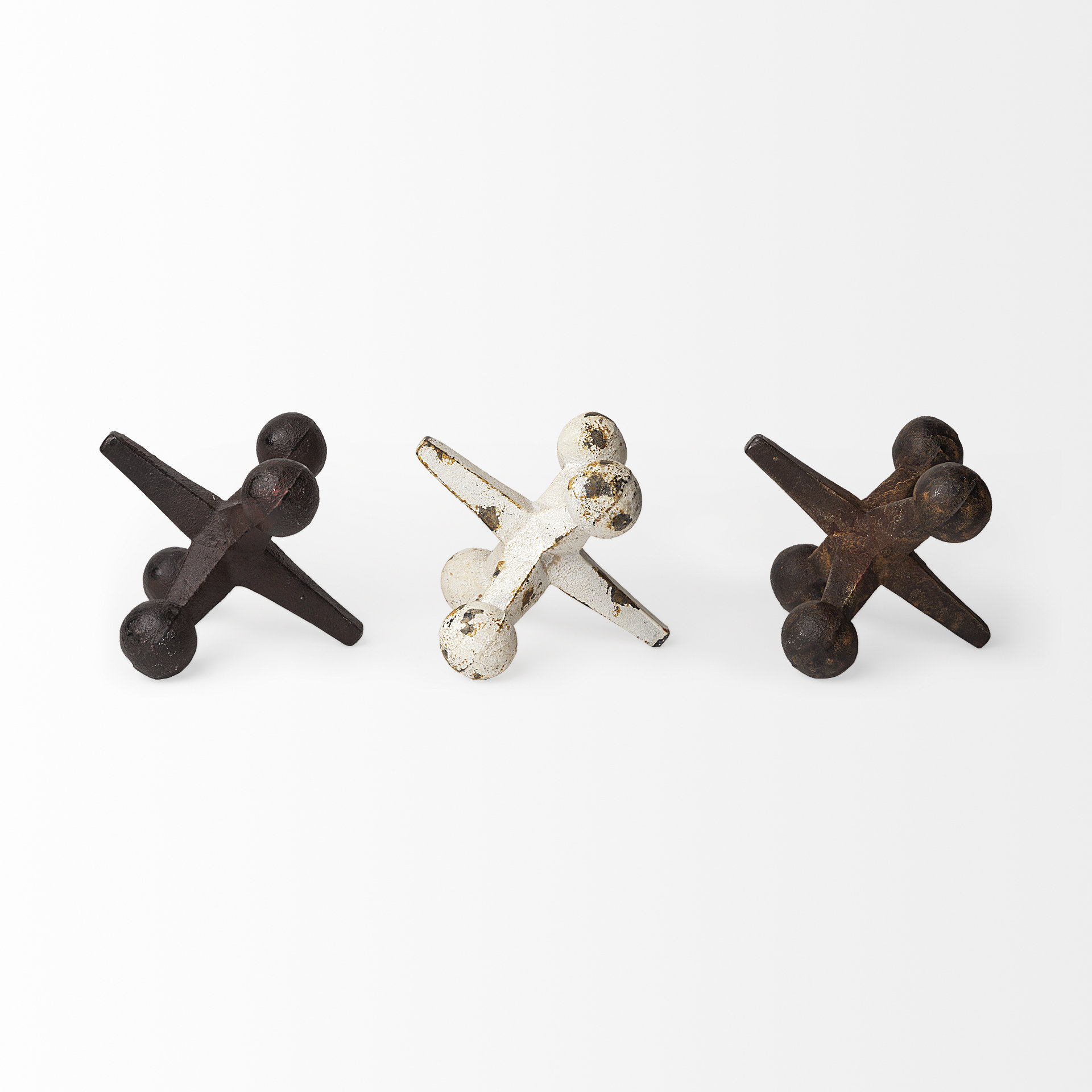 - Set of Three: Includes three metal jack sculptures.