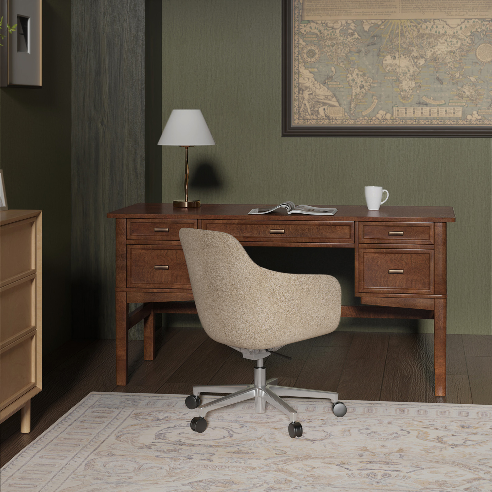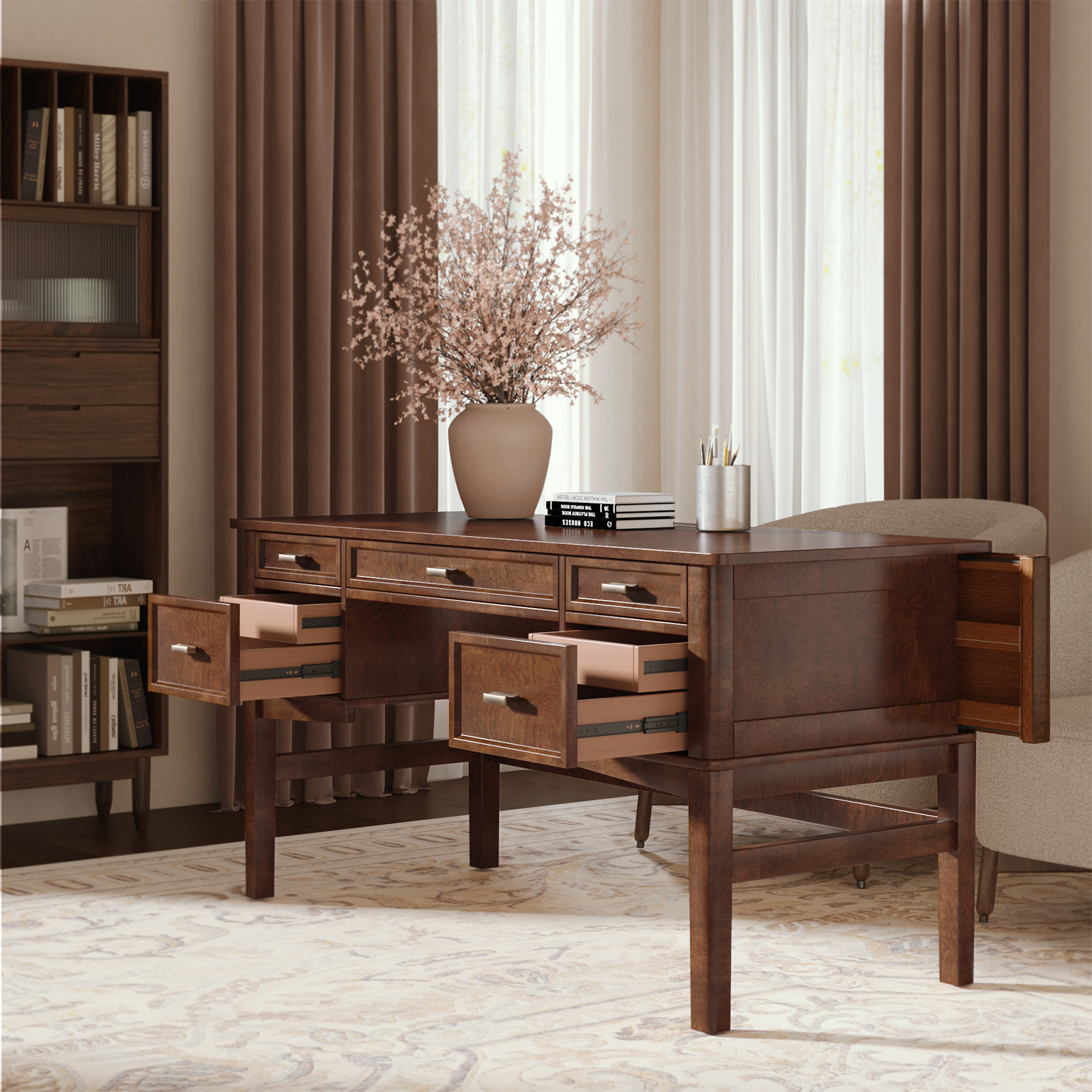 Elevate your workspace with this sleek and modern transitional desk! Designed for both style and ultimate functionality, this desk seamlessly integrates into any office or study. Keep your space clutter-free with cleverly hidden drawers and a concealed cable hole. Supported by solid wood legs, this desk offers durability and timeless craftsmanship.
