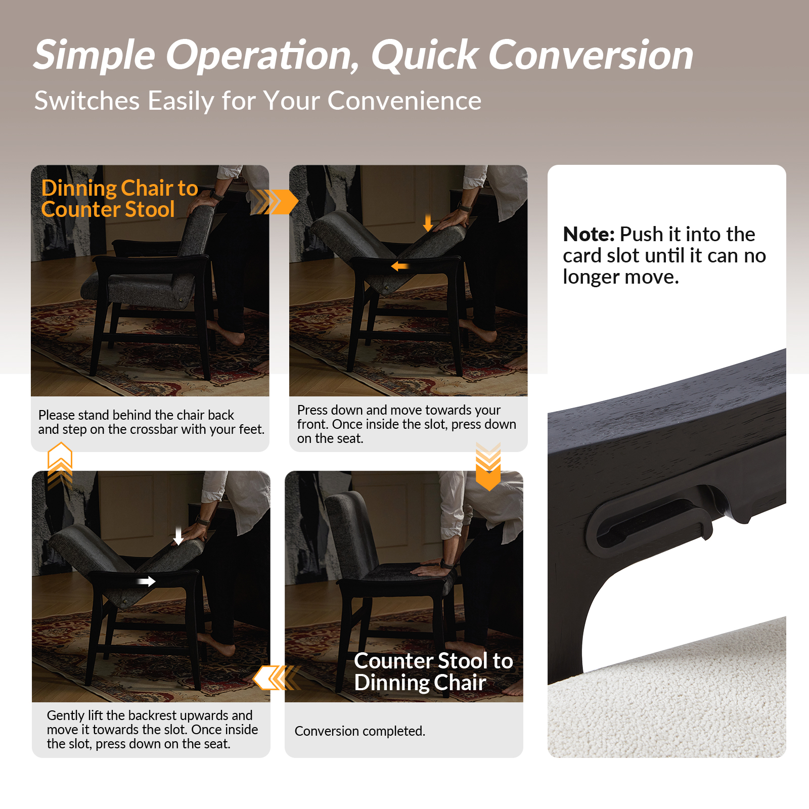 - Convertible Design: Easily transforms from a dining chair to a counter bar chair.