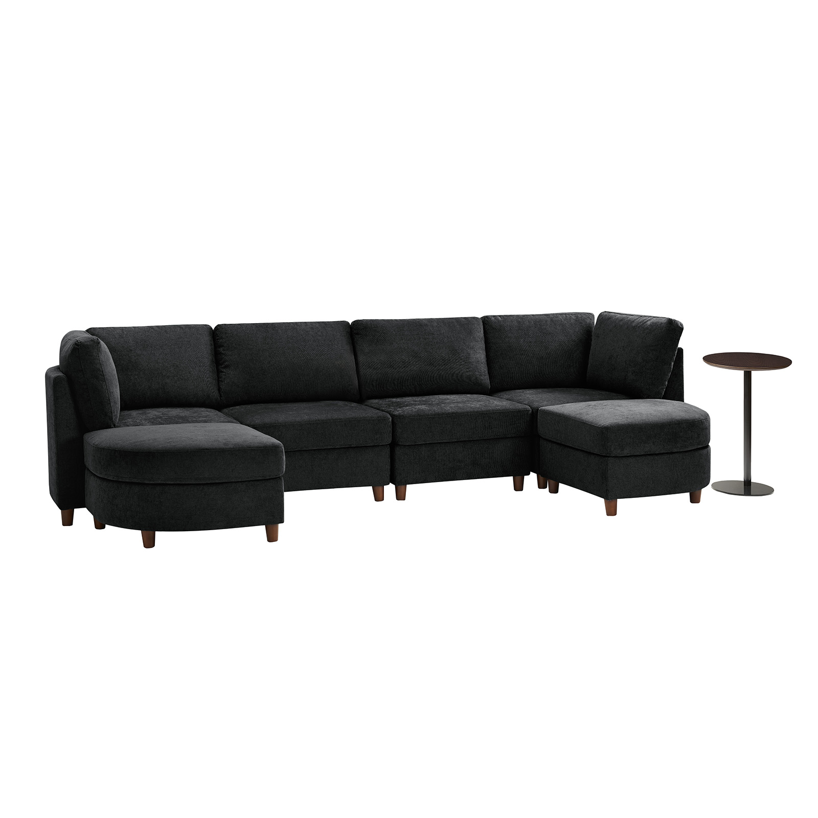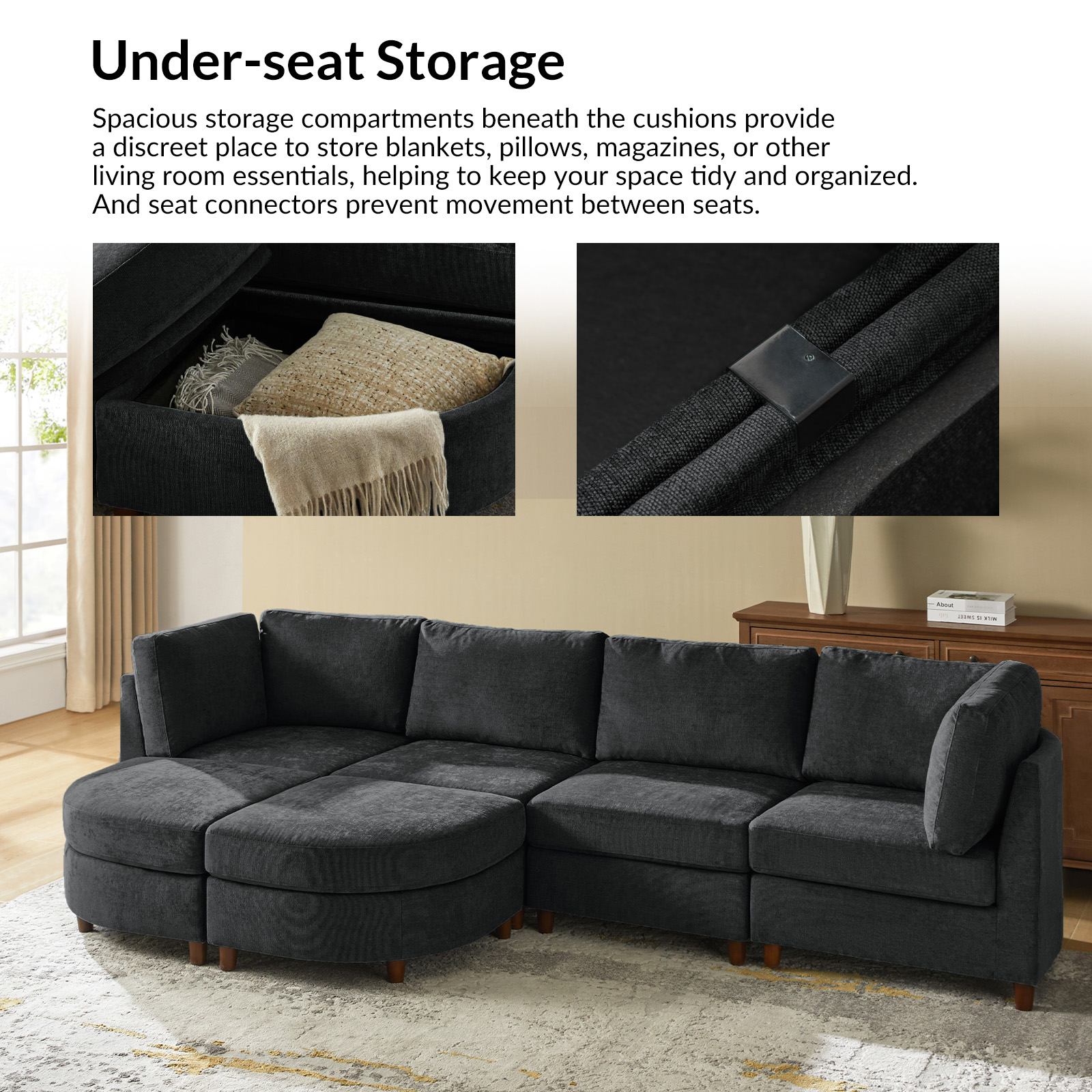 The Johannes Black Chenille Modular Sectional Sofa offers a blend of style and practicality for the modern home. This sectional features convenient under-seat storage, a handy round table, and a modular design for customizable layouts. Enjoy both comfort and organization in one sophisticated piece.