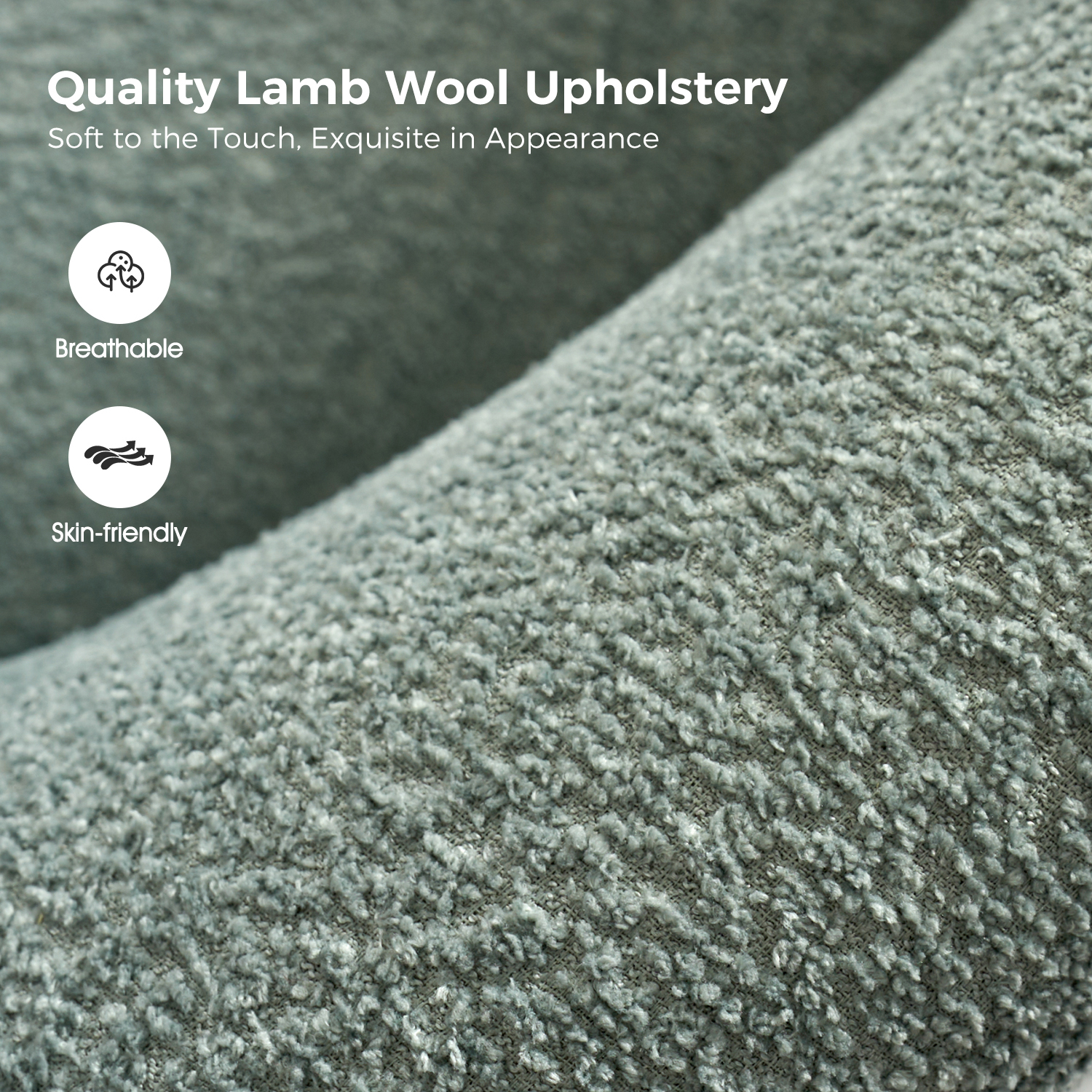 - Lamb Wool Fabric: Upholstered in luxurious lamb wool for a soft, plush feel and inviting texture.