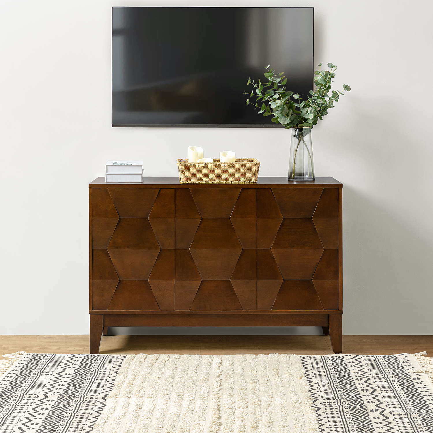 This 3-door storage cabinet brings a touch of contemporary style and practical storage to any room. With its sleek design and ample space, it’s perfect for keeping your belongings organized and accessible. We love how the hexagonal details add a subtle, eye-catching texture!