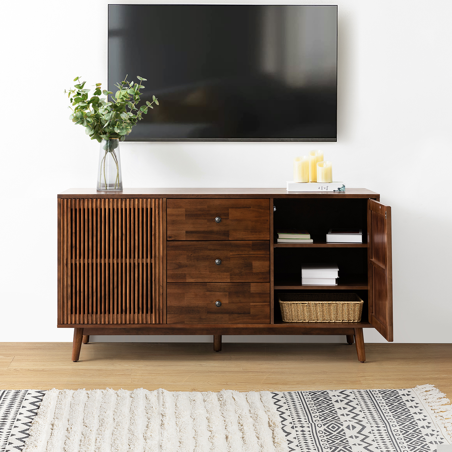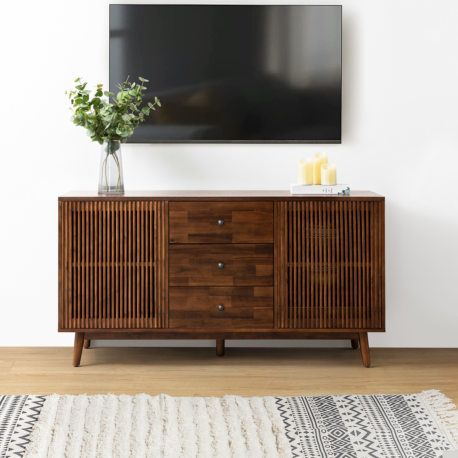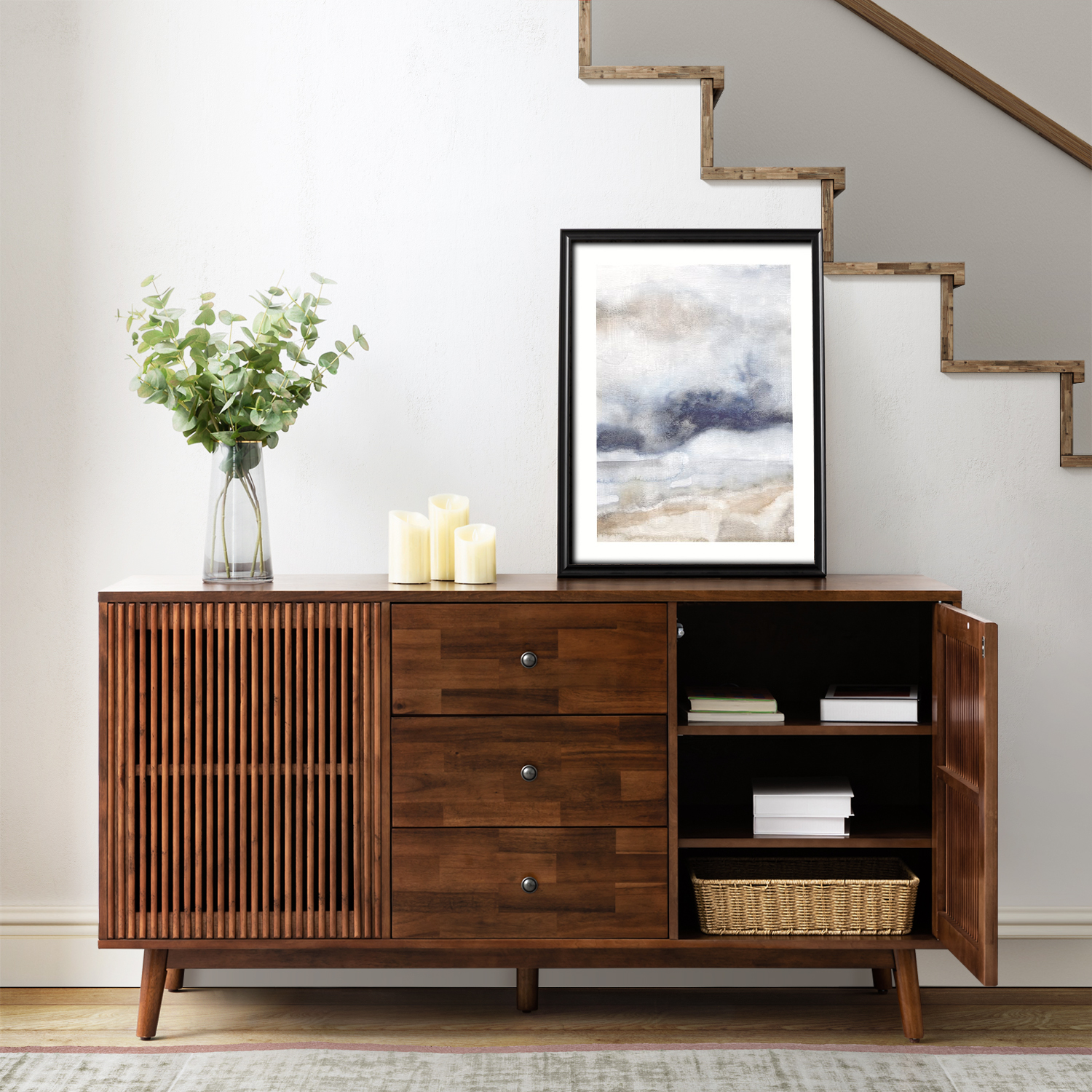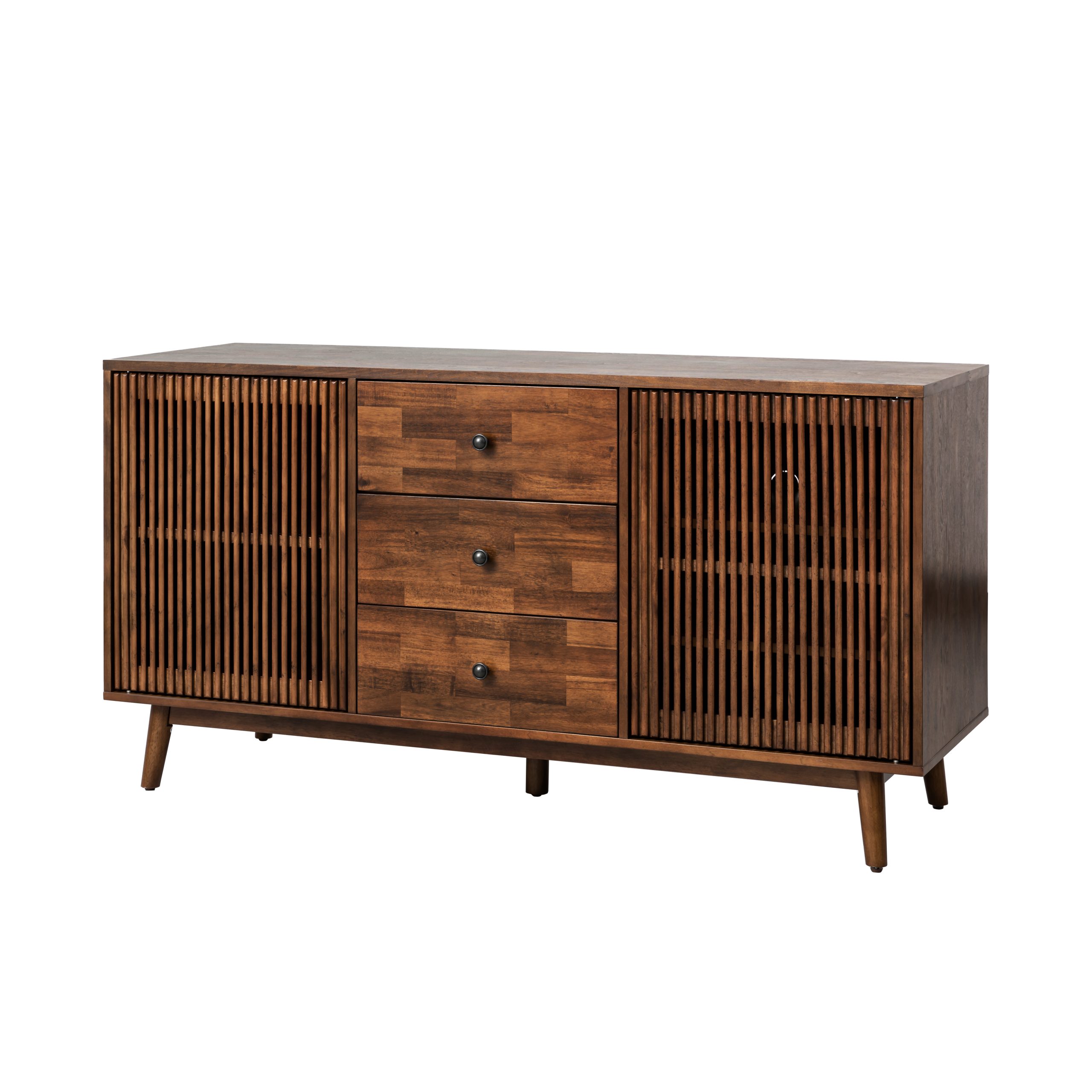 This sideboard is more than just a pretty face; it’s built to last and offers practical storage solutions. With slatted doors on the sides and drawers in the middle, you’ll have plenty of space to organize your belongings. Whether you’re looking to store entertainment essentials or simply declutter your living space, this sideboard has you covered.