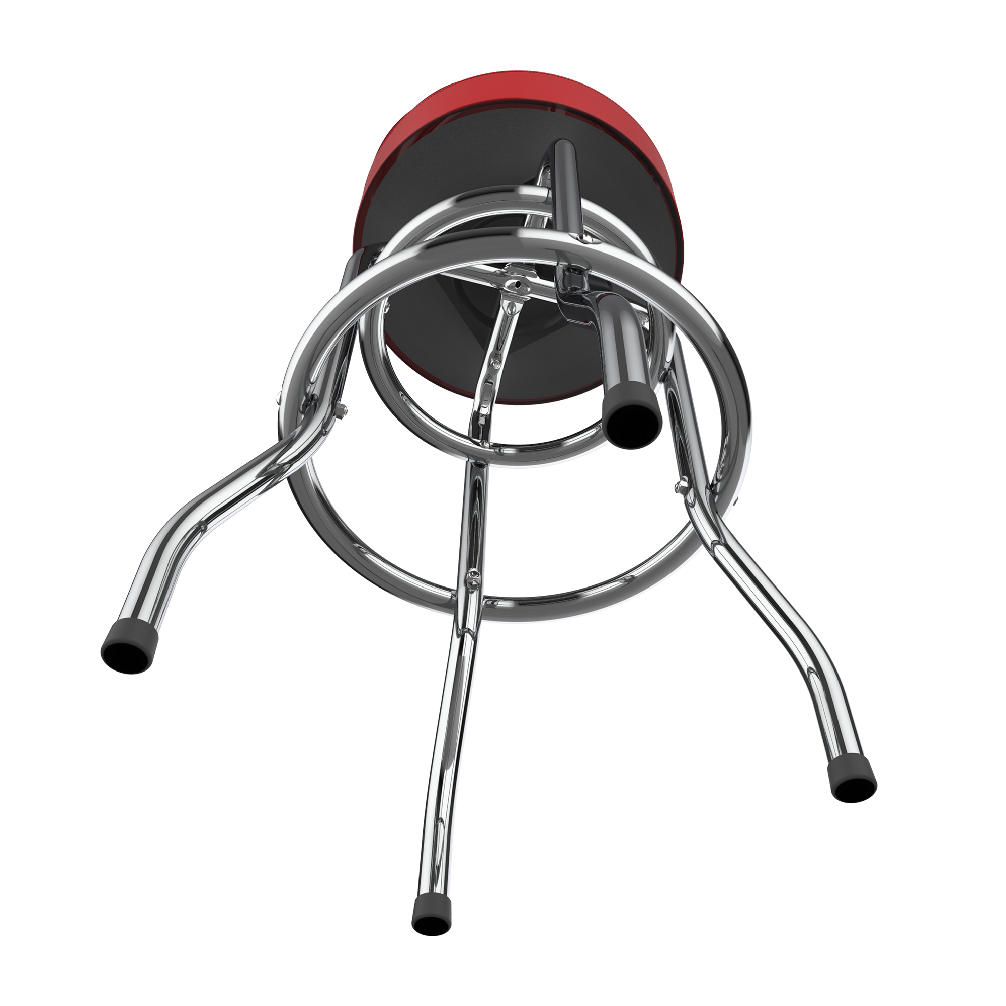 Show your team pride with this American Crafted Chrome Bar Stool. This commercial grade stool is built to last. It features a 14.25″ Wood Construction Seat with 12 Gauge vinyl and reverse printing. This means the logo won’t scratch off! The sturdy 19 gauge chromeplated steel frame has a double ring construction with a 1 inch outer Ring. Dimensions (LxWxH): 16.75 x 16.75 x 30. Product Weight (lbs): 18. Material: Steel, Vinyl. Add a touch of team spirit to your man cave.