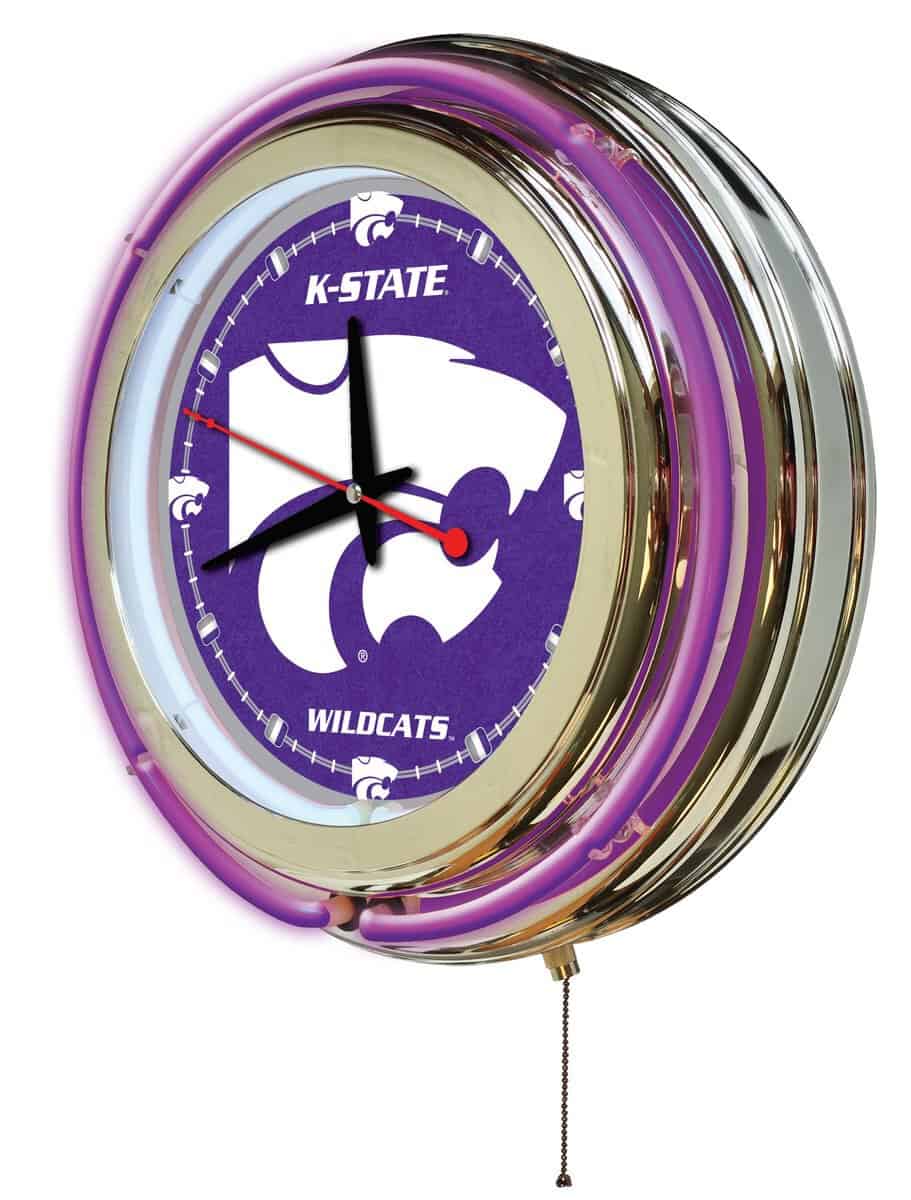 The Kansas State University 15-Inch Neon Logo Clock in Chrome is the perfect addition to any fan’s space, showcasing school spirit with its vibrant neon design. Featuring a stunning chrome casing, this clock boasts a team color-specific neon outer ring that beautifully illuminates the custom printed clock face with a brilliant white inner neon ring. The neon rings can be effortlessly controlled with a pull chain located at the bottom of the clock, powered by a UL Listed transformer that connects to a standard 120V outlet. With accurate quartz movement, this clock ensures precise timekeeping, operating with a single AA battery (not included). Ideal as a gift for graduates, sports enthusiasts, or as a personal treat, this clock combines style and functionality.