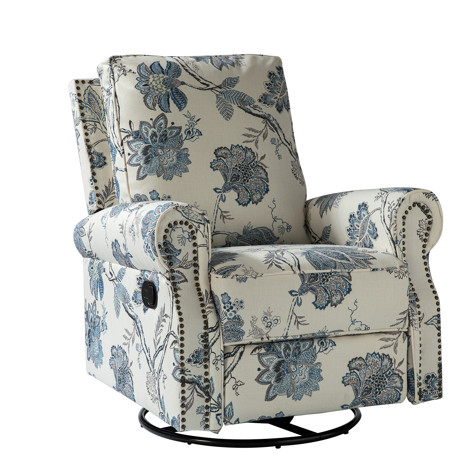 Kaspar Jacobean Manual Swivel Glider Recliner with Nailhead Trim