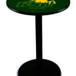 Perfect for any bar, game room, or man cave, this 42-inch pub table combines style, durability, and functionality. Featuring a sleek design with a scratch-resistant, vibrant laminate top and a sturdy, powder-coated black wrinkle base, this table is built for both aesthetic appeal and long-lasting performance. The adjustable feet ensure stability on any surface, while the easy-to-clean surface makes maintenance a breeze. Add a touch of class and functionality to your space with this versatile and reliable pub table.