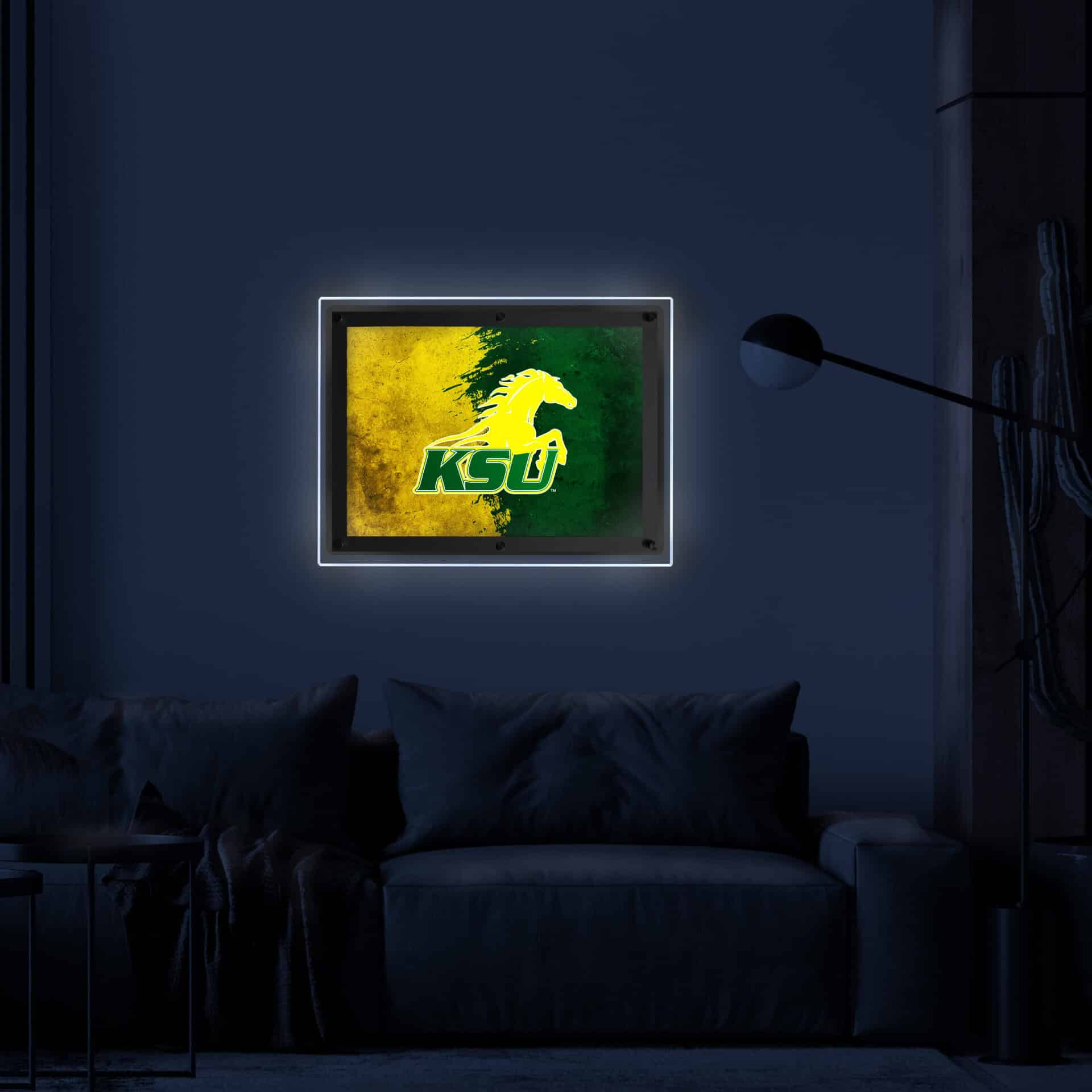Show your team pride with this Officially Licensed Backlit LED Sign. Its simple yet elegant design allows the colors to burst through the digitally printed acrylic. This lightbox is an attention grabber whether wall mounted, displayed on a desktop, or placed on a shelf. Ideal for your office, garage, or any room, this sign lets you show your team spirit.