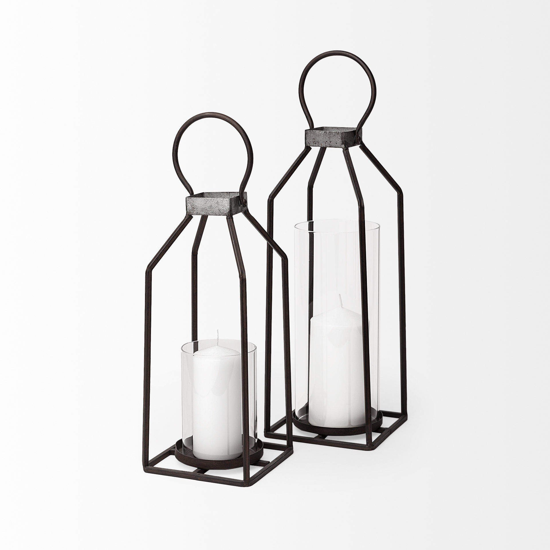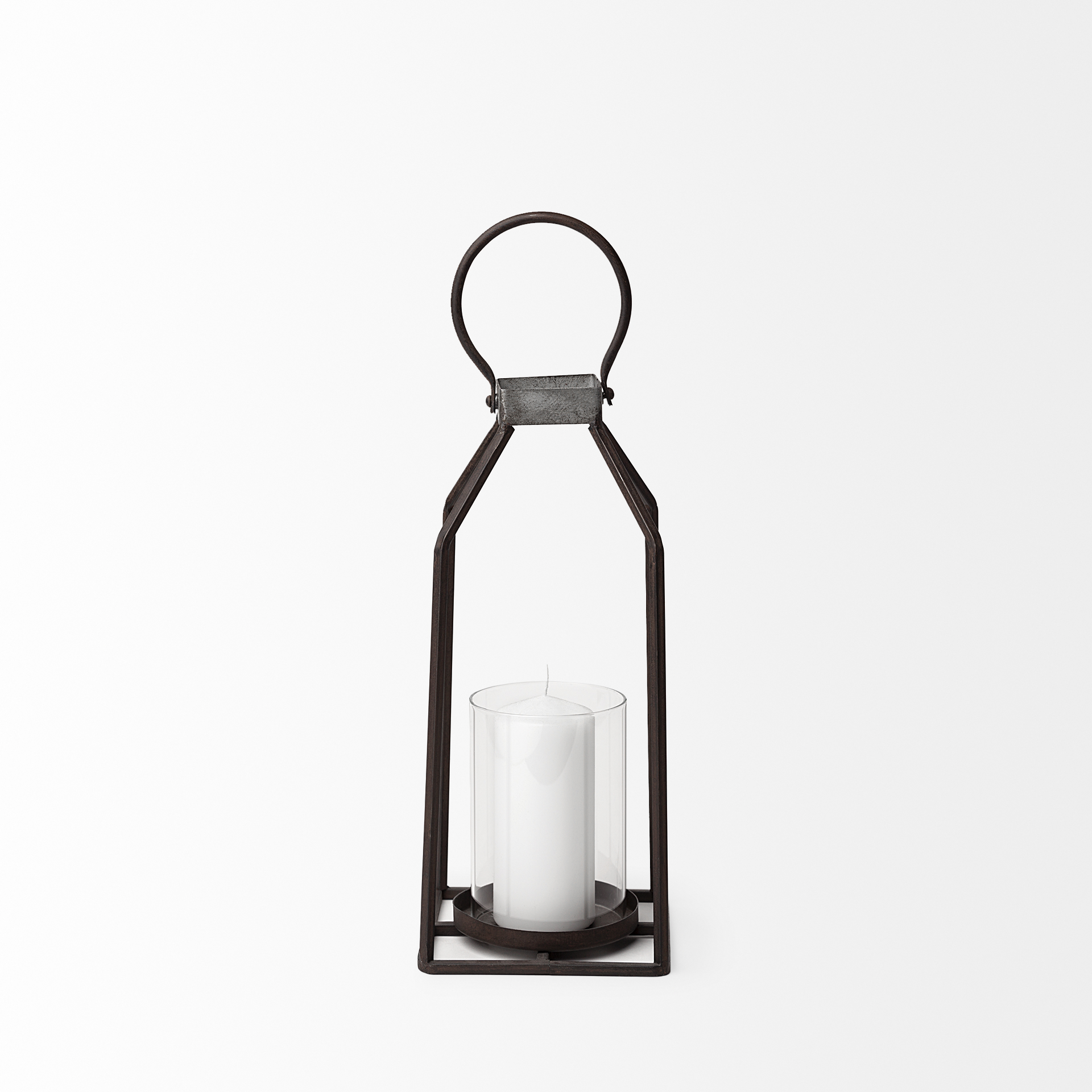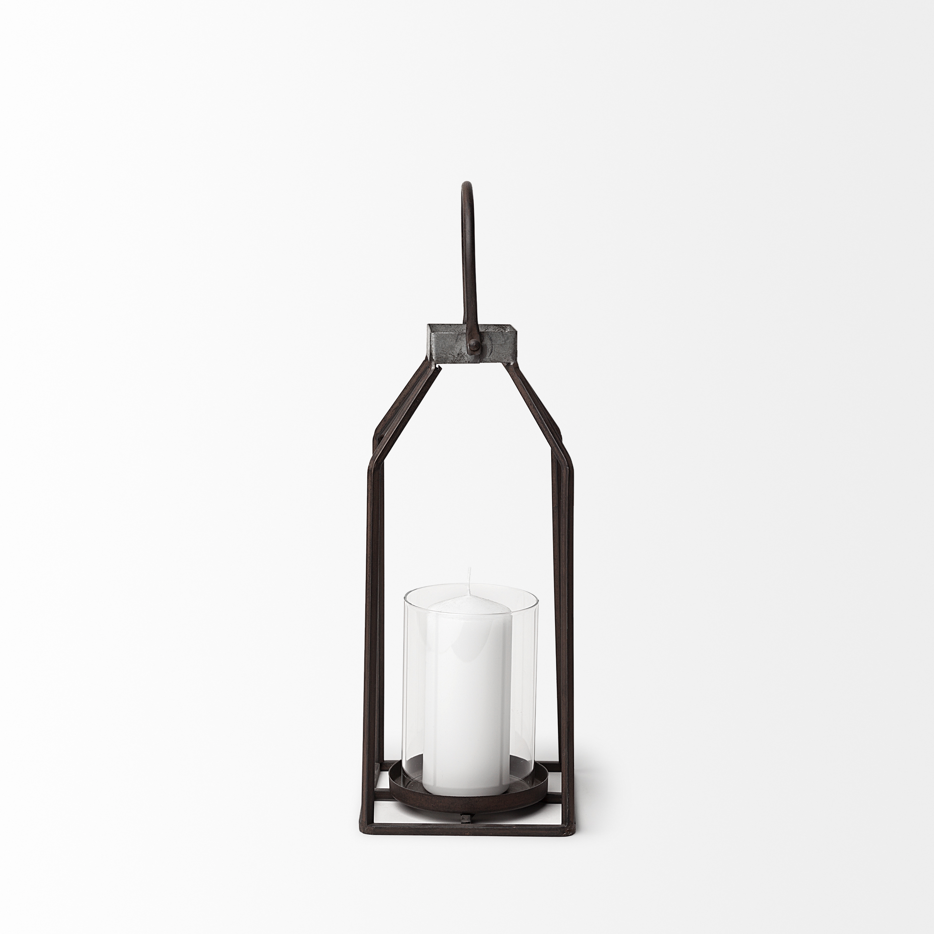 This square metal rod framed candle holder with glass adds a touch of rustic style to any room. It can be hung or rest on a table or shelf, providing versatile placement options to beautifully illuminate your space. Crafted to stand the test of time, this candle holder is both a stylish and functional decor piece.