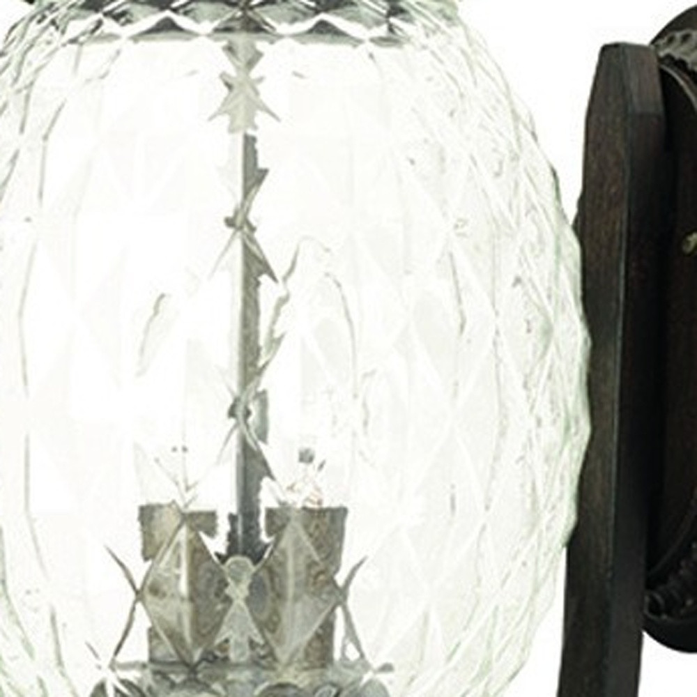 Lanai embodies southern charm, offering a welcoming and elegant touch to your home. This tropical fruit-shaped wall lantern is an exquisite combination of durability and style. Crafted from cast aluminum with clear, textured glass in the shape of a pineapple, this 3-light lantern is perfect for creating a warm and inviting ambiance. Ideal for front doors or man caves, this lantern symbolizes hospitality and sophistication.
