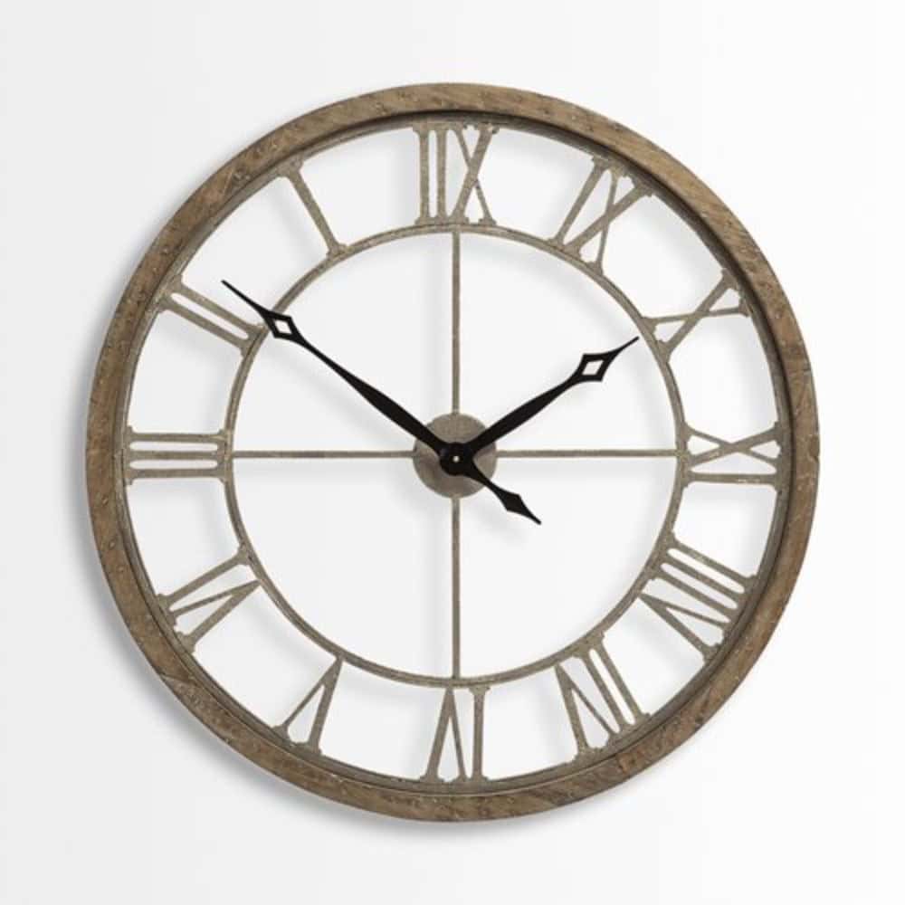 The Large Whitewash Brown Round Modern Farmhouse Wall Clock 31.5″ is a stunning addition to any space, combining rustic charm with modern farmhouse aesthetics. Crafted from real wood with a slight whitewash finish, this clock exudes natural beauty and sophistication. The large 31.5-inch size makes a bold statement on any wall, while the see-through face, roman numerals, and matte-black hands ensure easy readability from a distance. Perfect for man caves, living rooms, or any area that needs a stylish and functional timepiece.