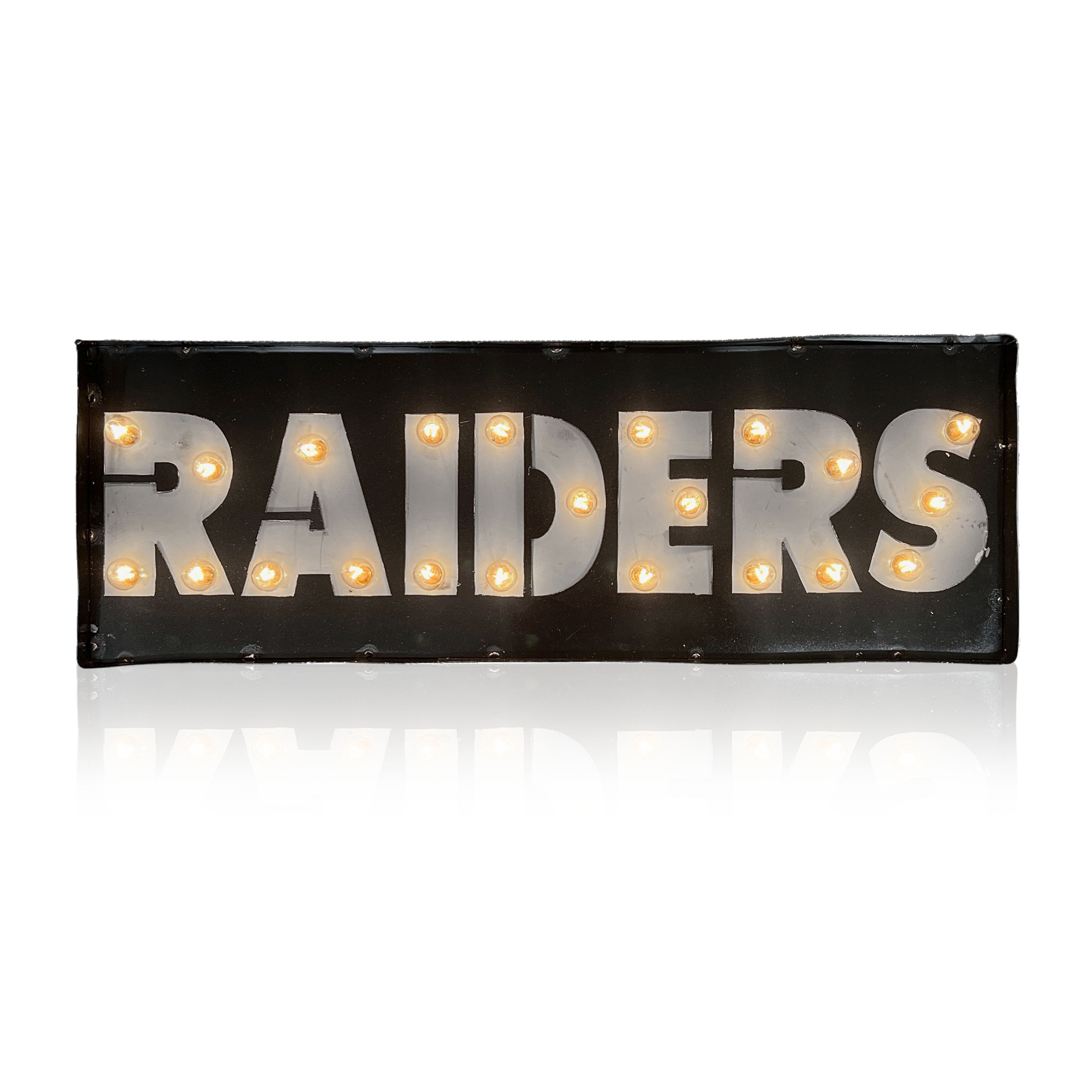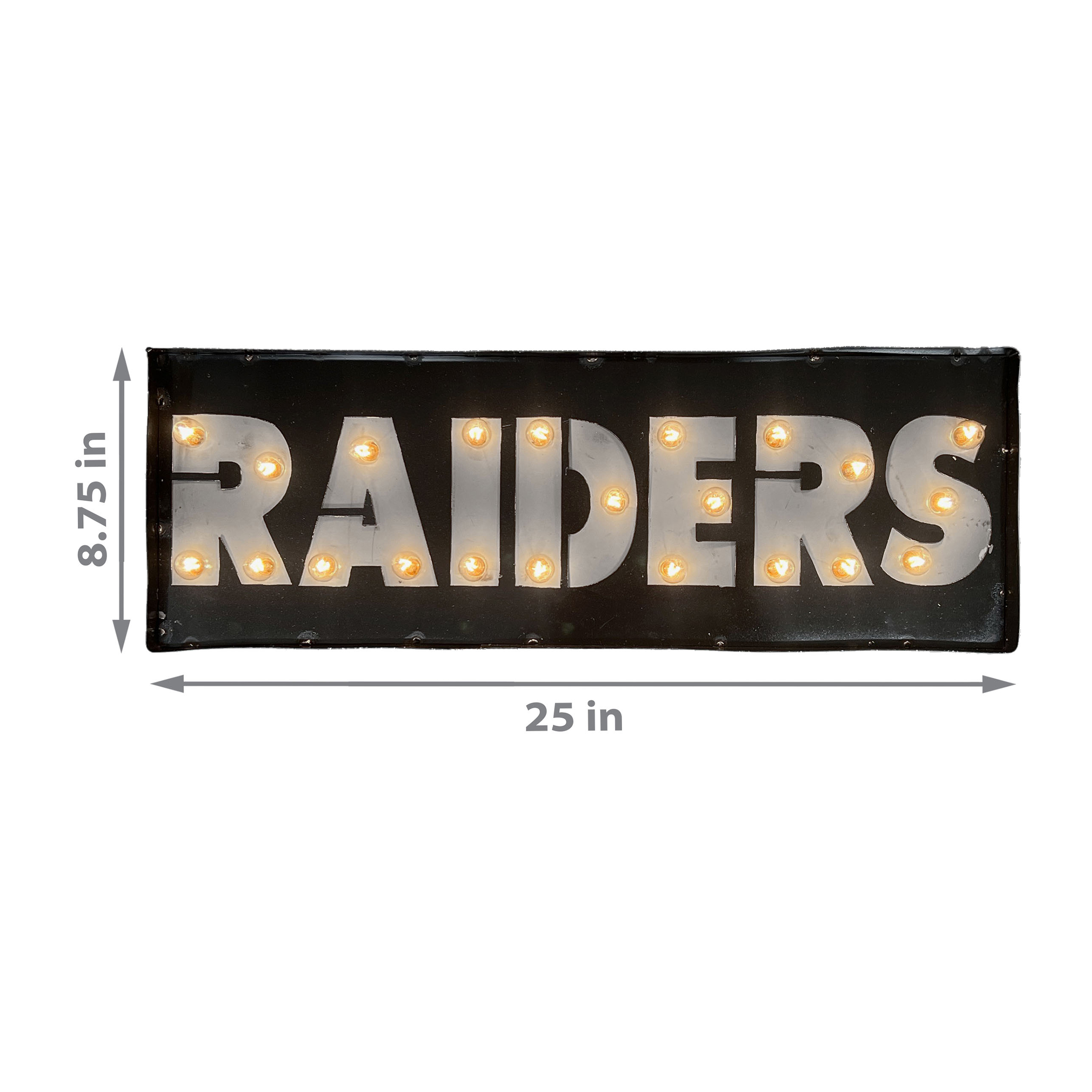 This distinctive décor piece showcases laser-cut lettering with layered steel and exposed weld spots, providing a unique, retro aesthetic. The included light strands, fitted with clear, incandescent C7 glass bulbs, ensure your team spirit shines brightly.