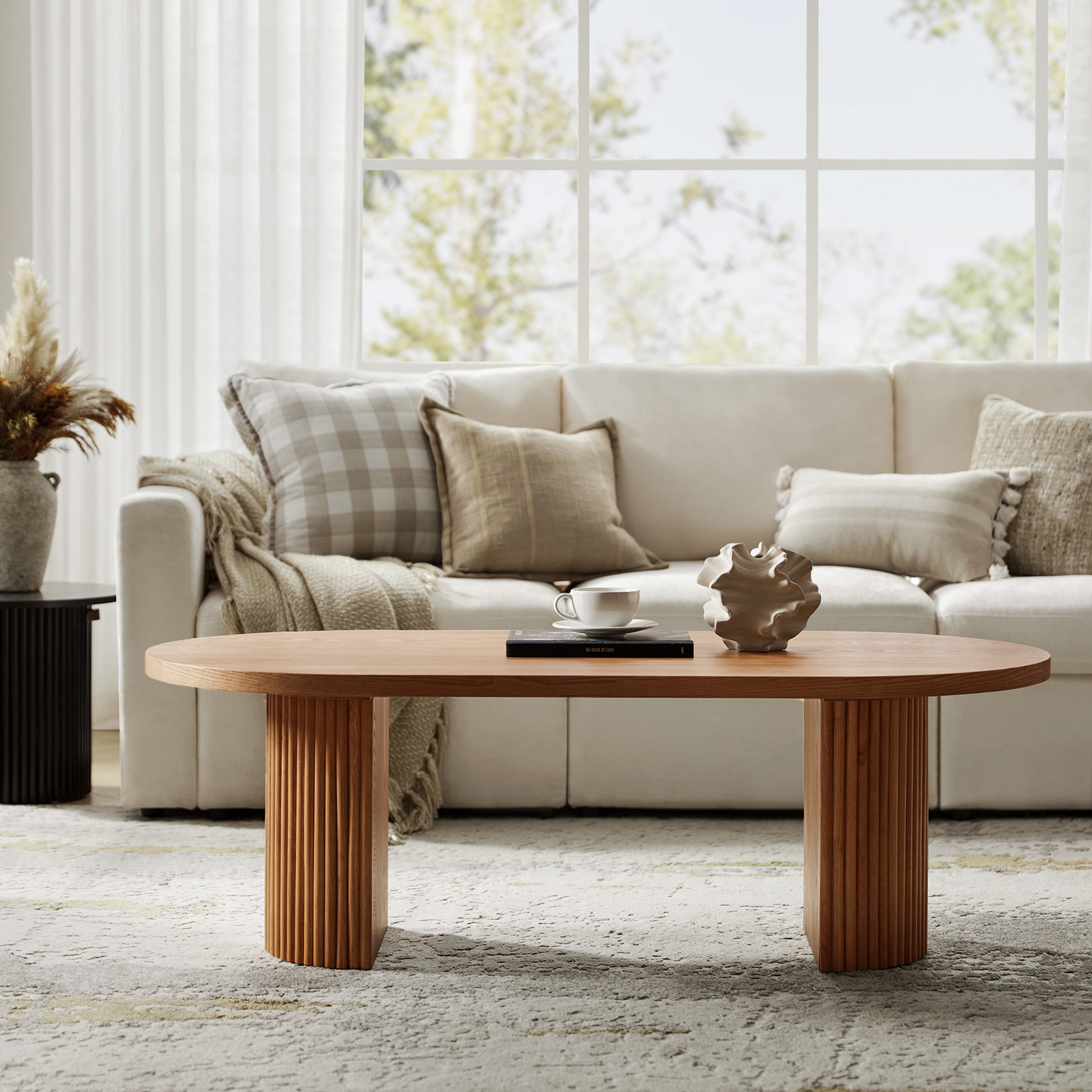 - Oval Tabletop: The oval shape provides ample surface space for coffee table essentials like books, drinks, or decor, while its smooth edges create a soft, welcoming look.