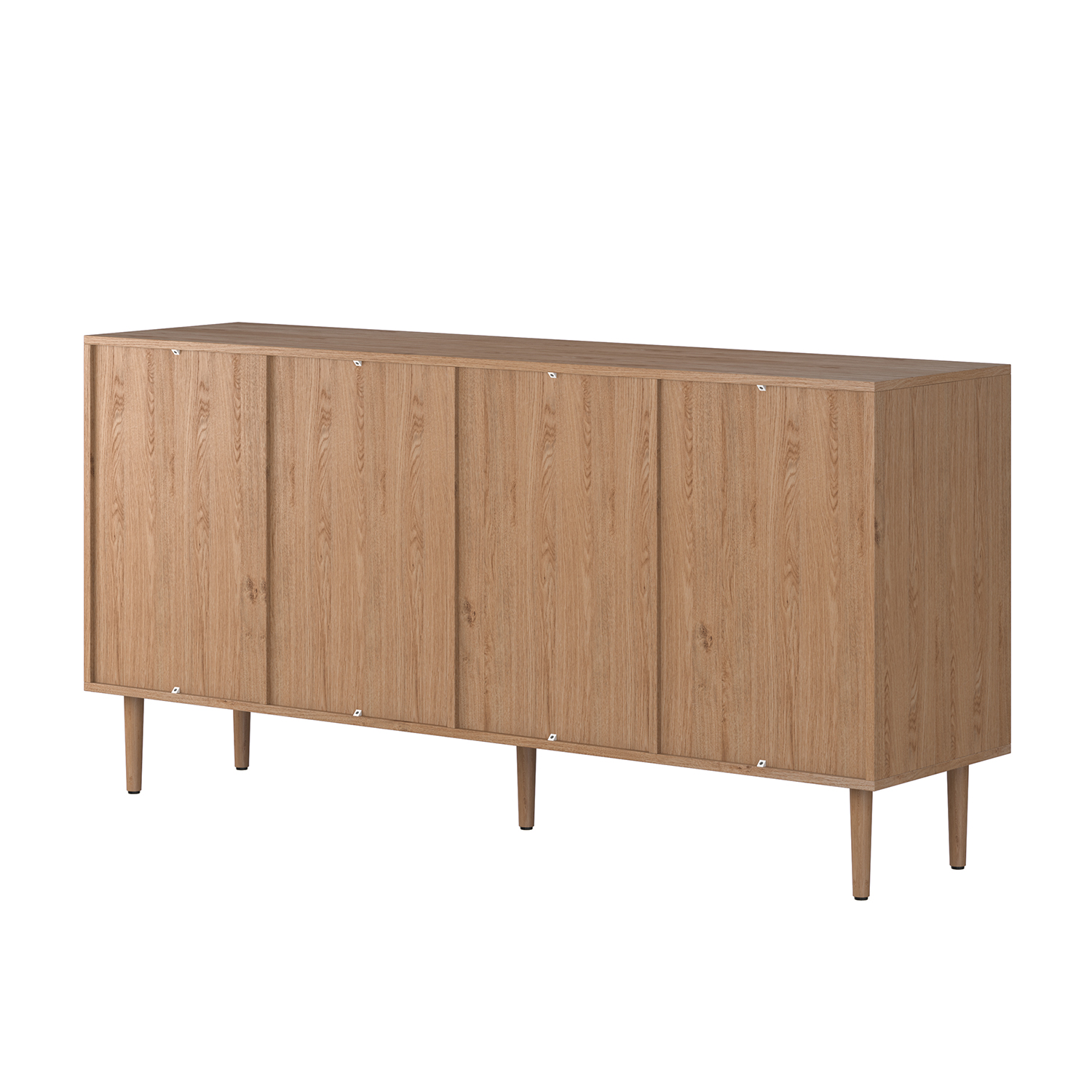 Add style and storage to your cave with this modern sideboard. It has a contemporary design with unique rattan texture details on the doors. Use it in the entry, kitchen, dining area, or living room. It’s a great storage solution for plates, books, or display items. The push-to-open doors make it easy to grab what you need. Open shelves and internal compartments help you stay organized. Metal legs provide stability and make cleaning the floor easy. Get organized in style! Dimensions (WxDxH): 63 x 15.7 x 30.2. Product Weight: 91.3 lbs. Material: Manufactured Wood, Metal. Color: OAK. Assembly Required: Yes.