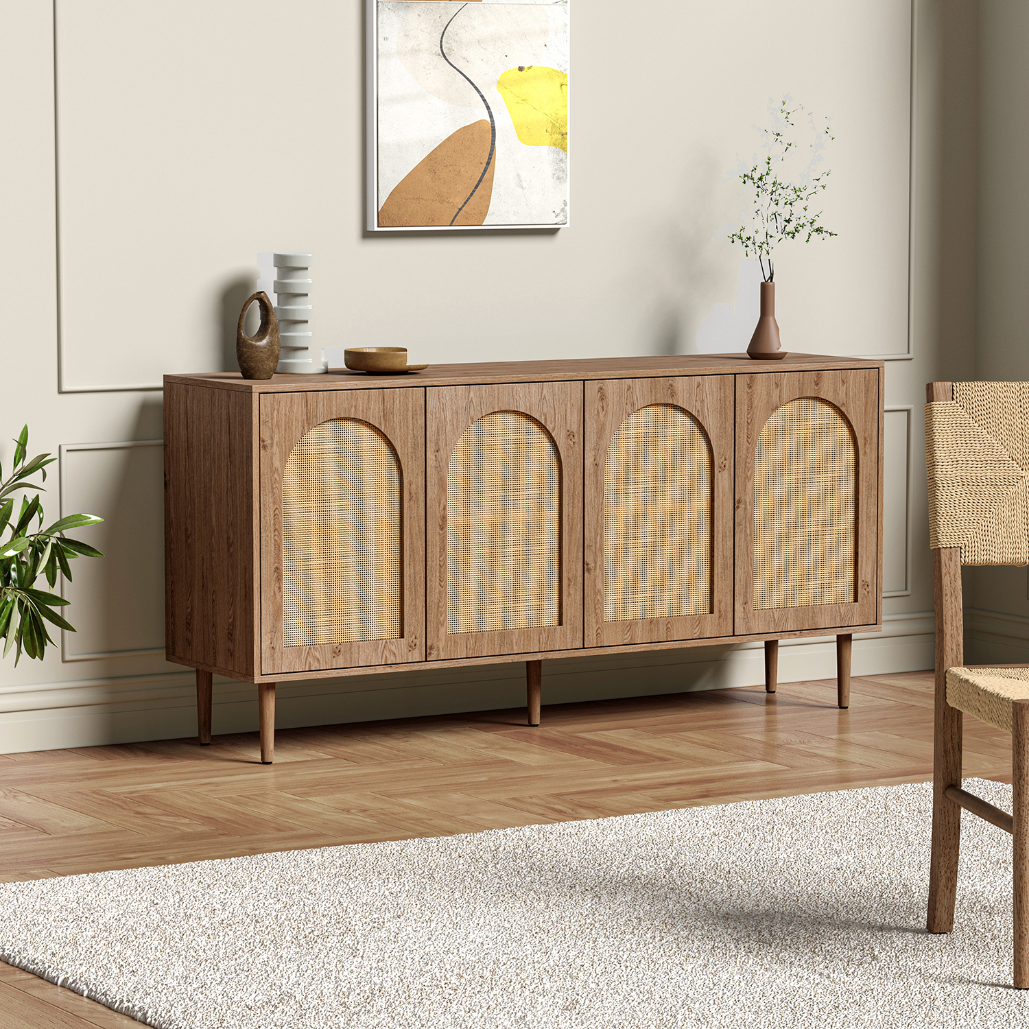 Lenz Oak Rattan Door Modern Storage Sideboard