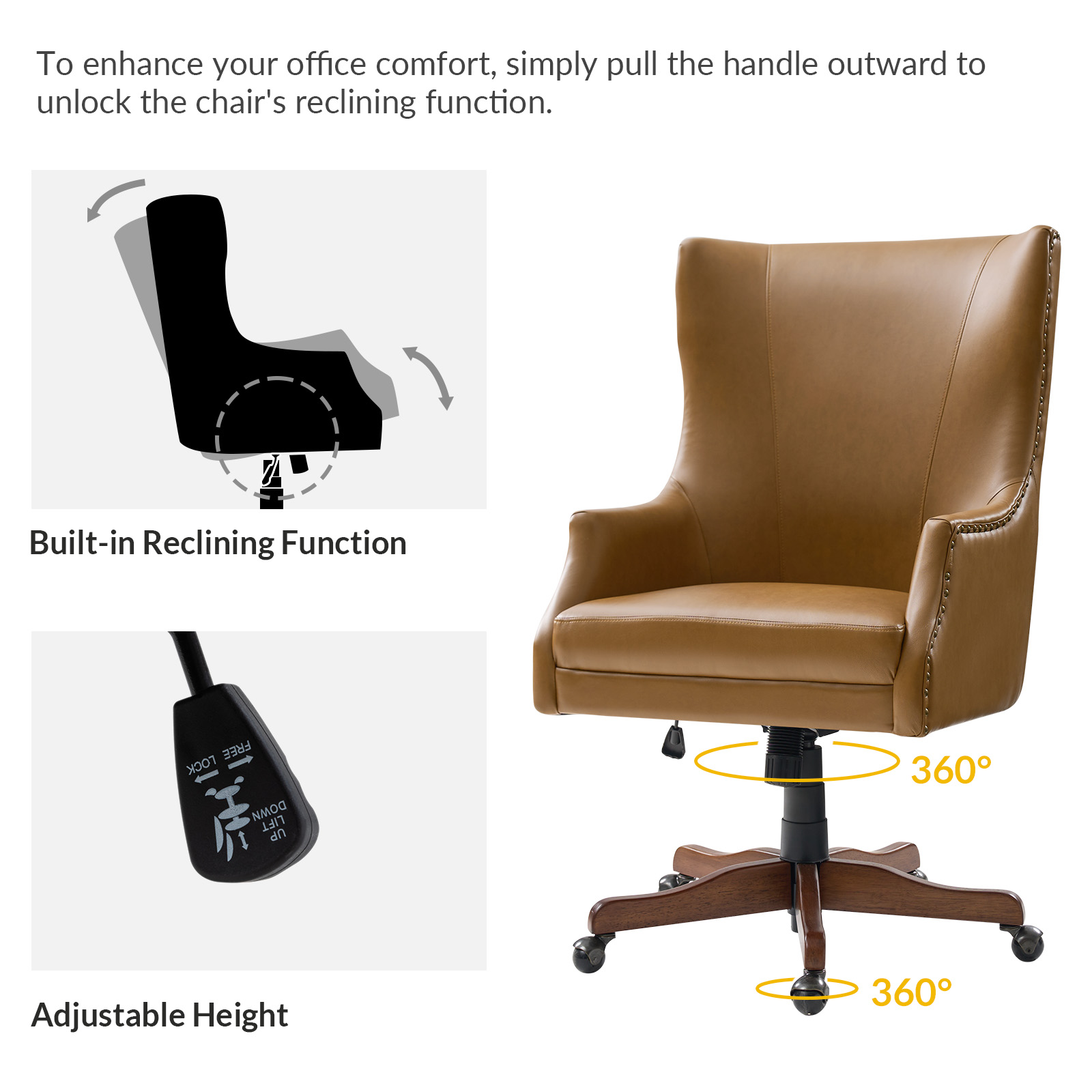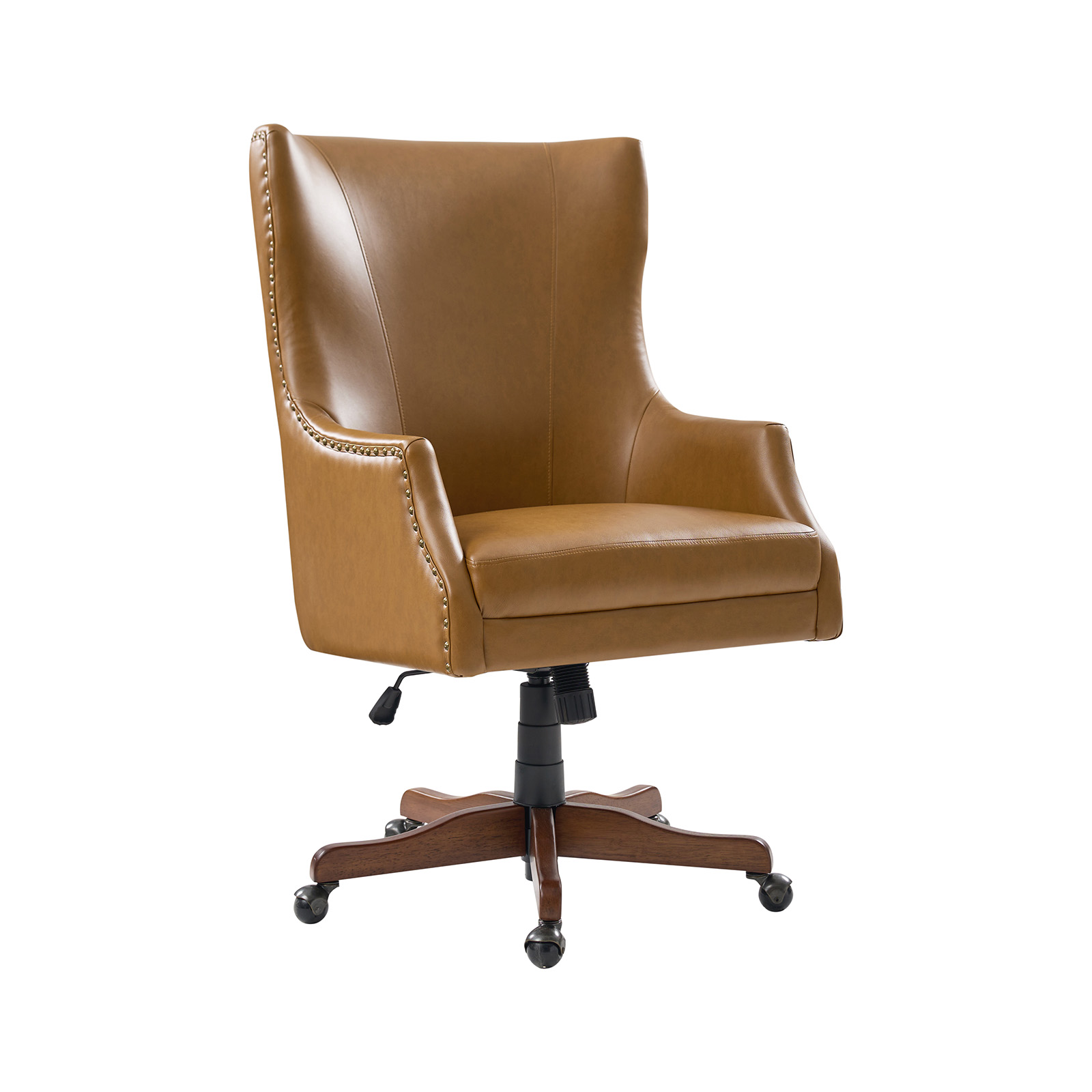 This office chair perfectly marries classic charm with modern functionality, making it an ideal addition to any home or office space. The transitional wingback design, complete with sophisticated copper nailhead trim, elevates the aesthetic of any room. Enjoy the luxurious feel of breathable faux leather, offering both durability and easy maintenance.