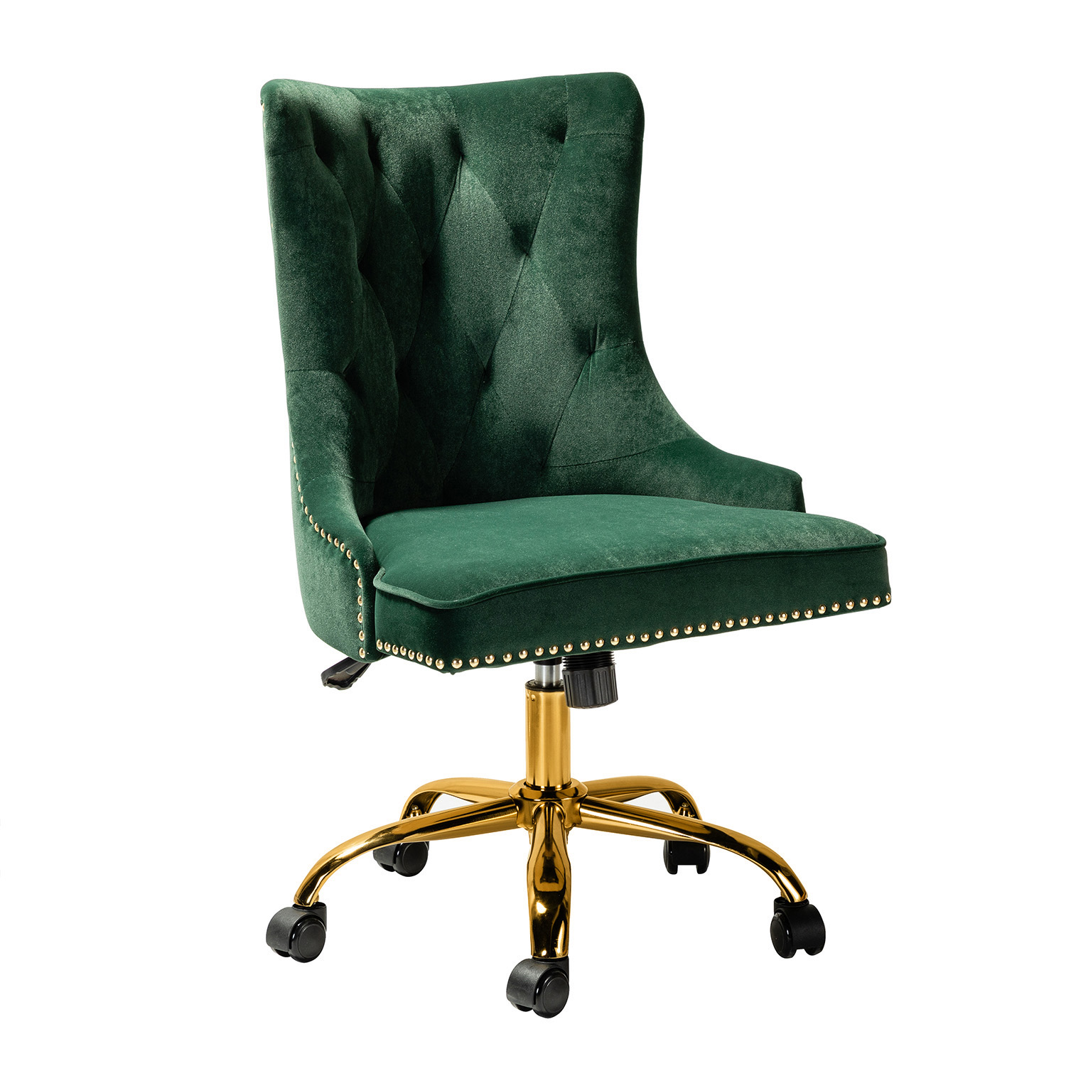Lisa Green Velvet Tufted Swivel Nailhead Trim Task Chair